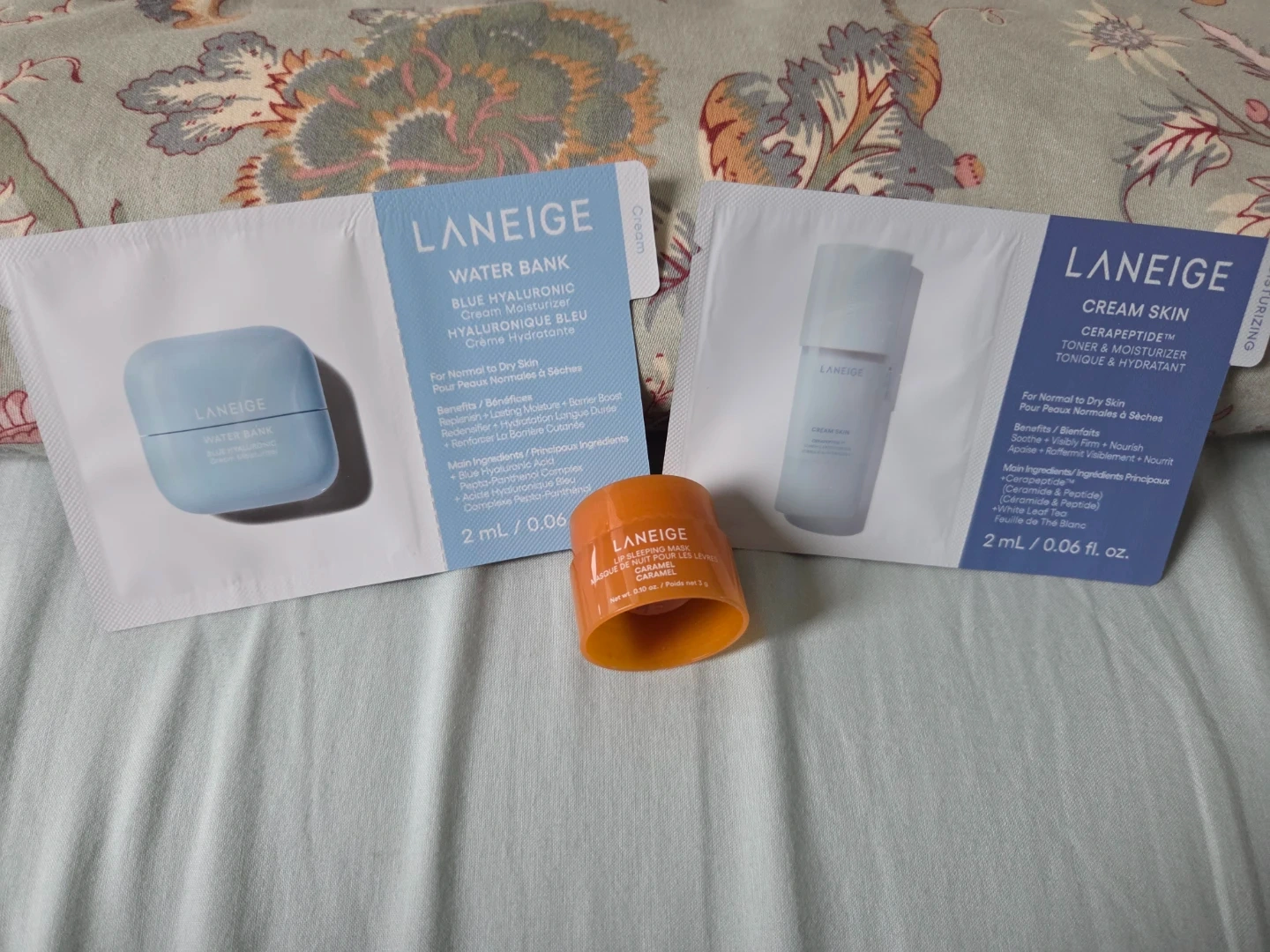 For free, includes Laneige Water Bank Blue Hyaluronic cream moisturizer and Cream Skin Cerapeptide Toner & Moisturizer samples when you purchase this. Each sample is 2 ml.