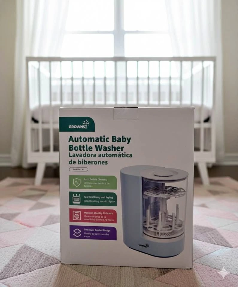 Brand new Grownsy Automatic Baby Bottle Washer in perfect condition. This all-in-one machine washes, sterilizes, and dries baby bottles and pump parts automatically — a must-have for busy parents!