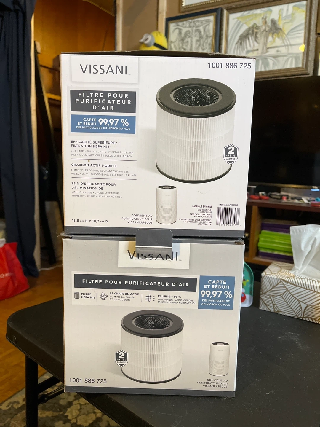 This is two VISSANI HEPA H13 air purifier filter. It captures and reduces 99.97% of particles down to 0.3 microns. It also features activated charcoal for odour removal, eliminating 95% of volatile organic compounds like acetone and formaldehyde. Fits VISSANI AP2008 air purifiers.