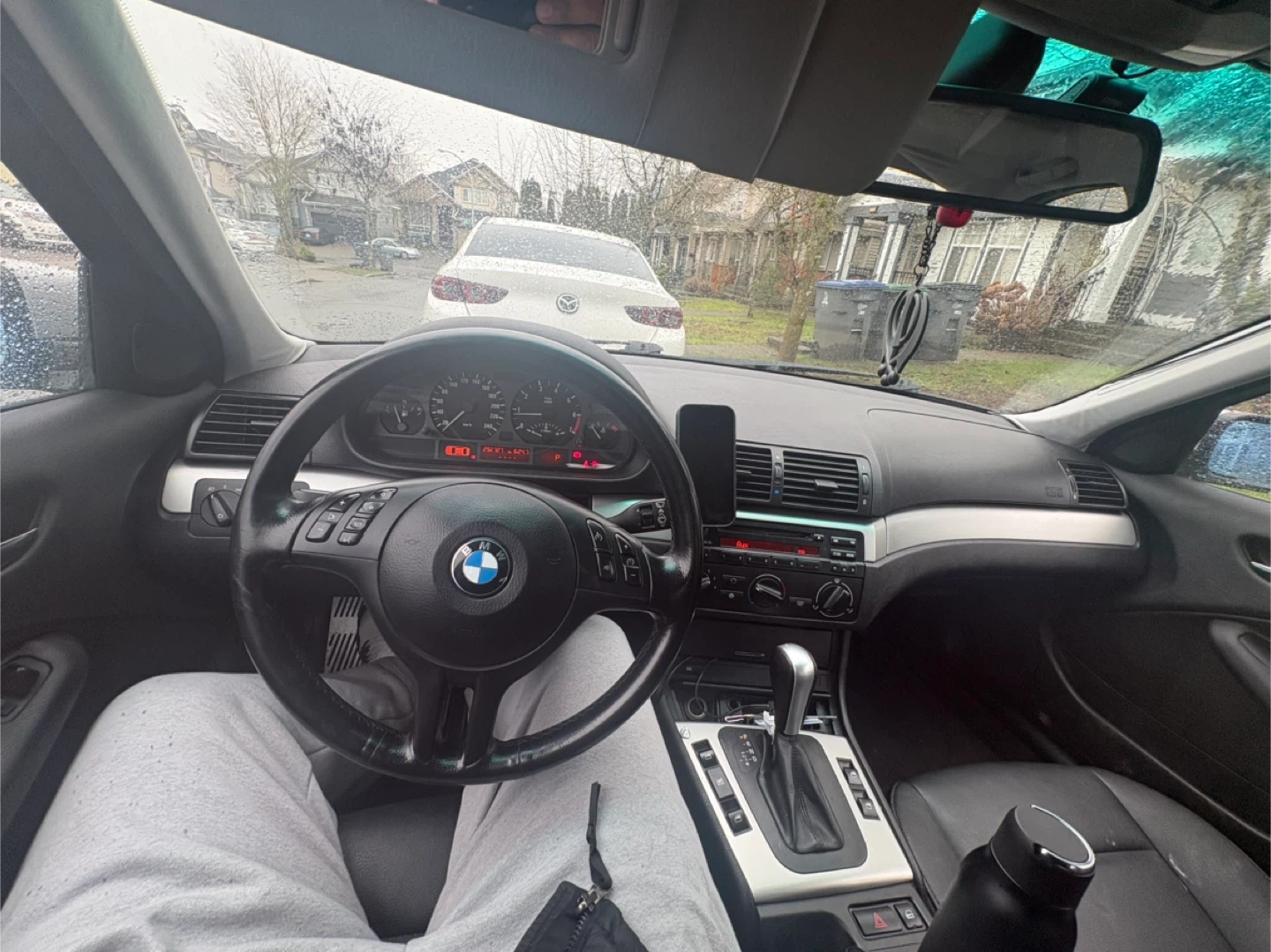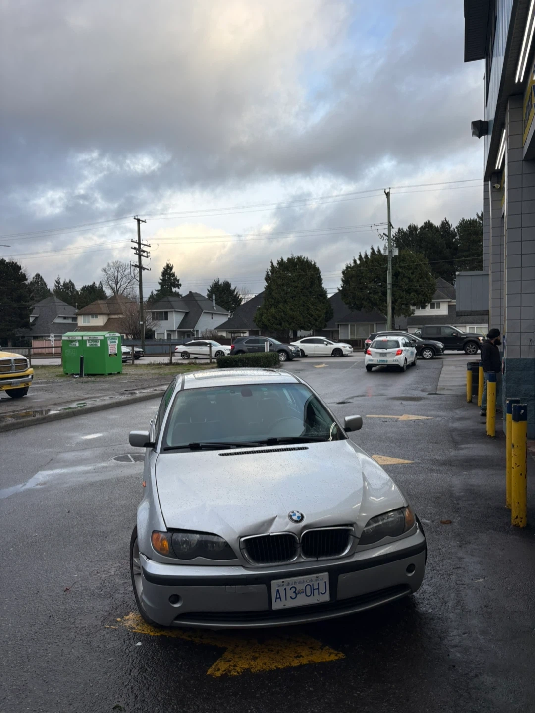A silver BMW 3 Series sedan. It's an automatic transmission.