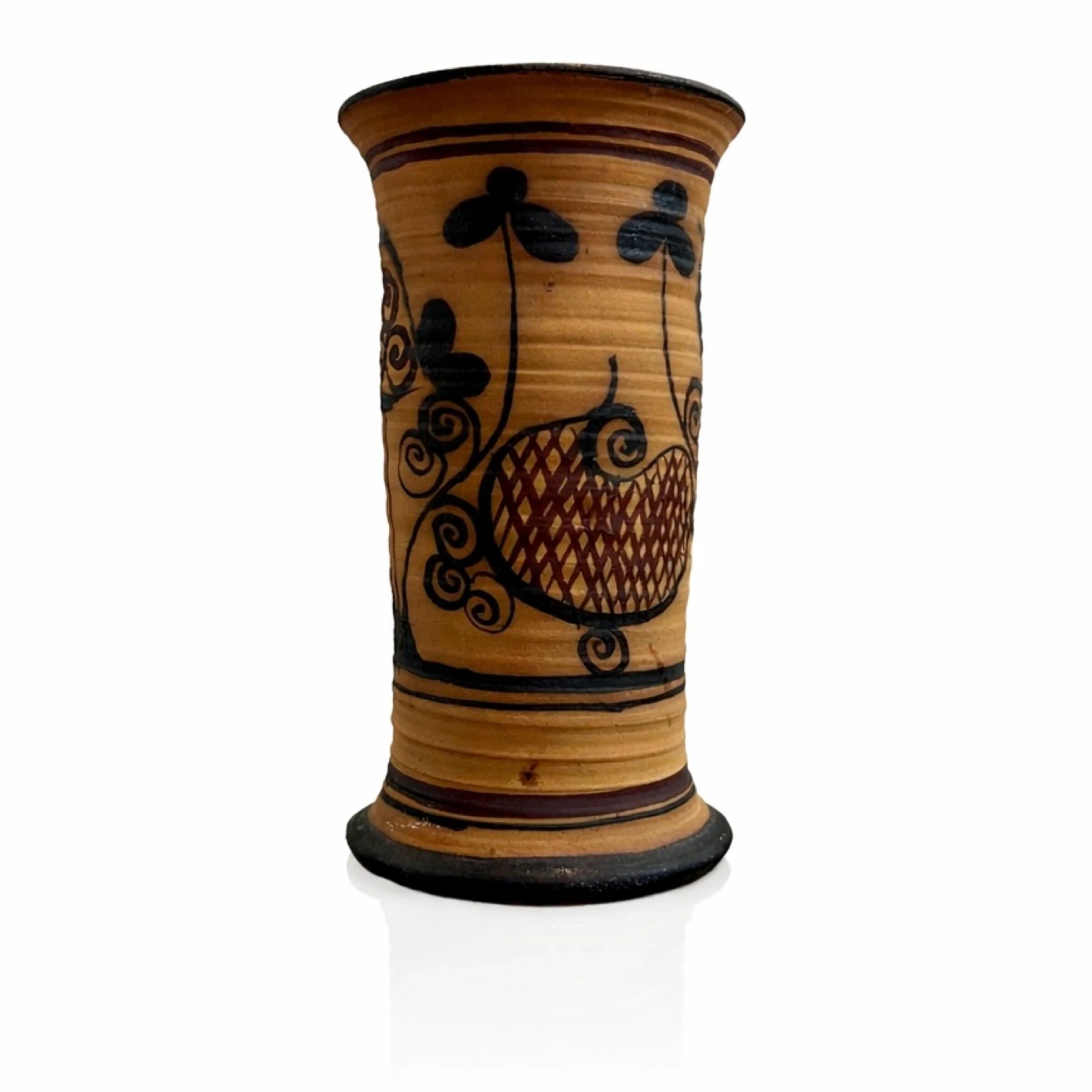 Yael Old Jaffa; Israeli pottery; Tel Aviv-Yafo; mid-century modern; folk modern; hand painted; studio earthenware; vintage vase.