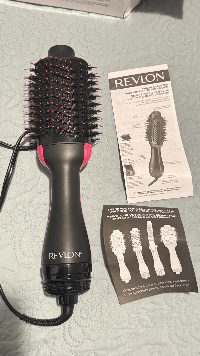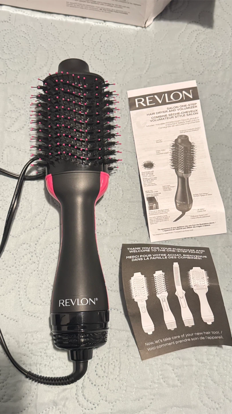 This Revlon One-Step Hair Dryer and Volumizer is designed to dry and style hair in one step. It's suitable for creating salon-like blowouts at home. This tool helps to reduce frizz and add shine to your hair.