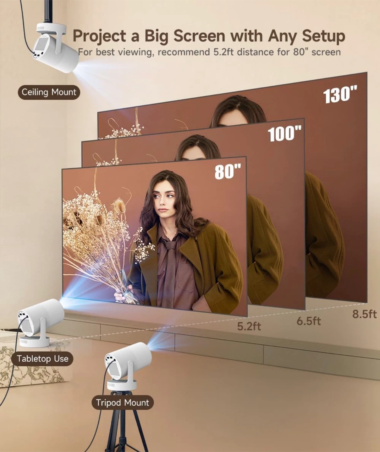Magcubic Projector 4K with WiFi and Bluetooth, Mini Portable Projecteur with Auto Keystone,Outdoor Movie for Bedroom,260 ANSI,180 Degree Rotation,Built-in Apps (Electric Focus & HY300Ultra)