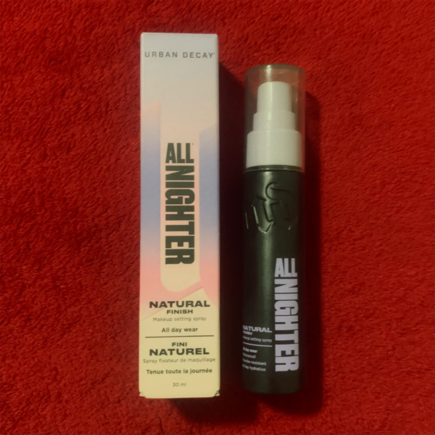 Urban Decay All Nighter Natural Finish Makeup Setting Spray. This spray is great for all-day wear and keeps your makeup looking fresh. It comes in a 30ml bottle.