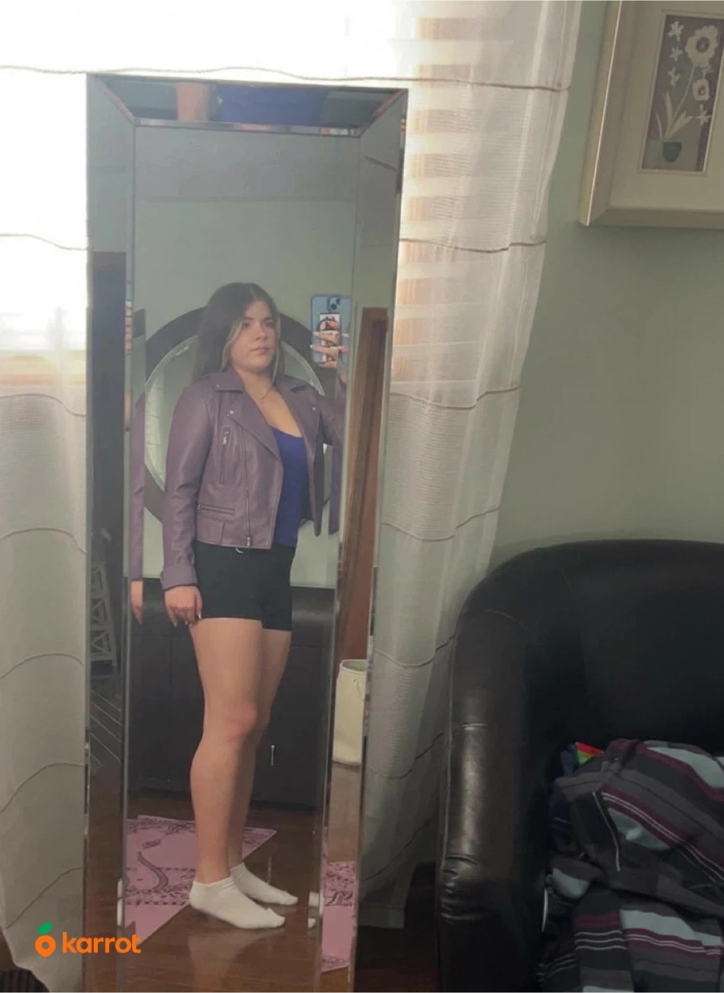 A stylish purple leather jacket! It's in great condition and ready for a new owner. Perfect for adding a pop of colour to your wardrobe