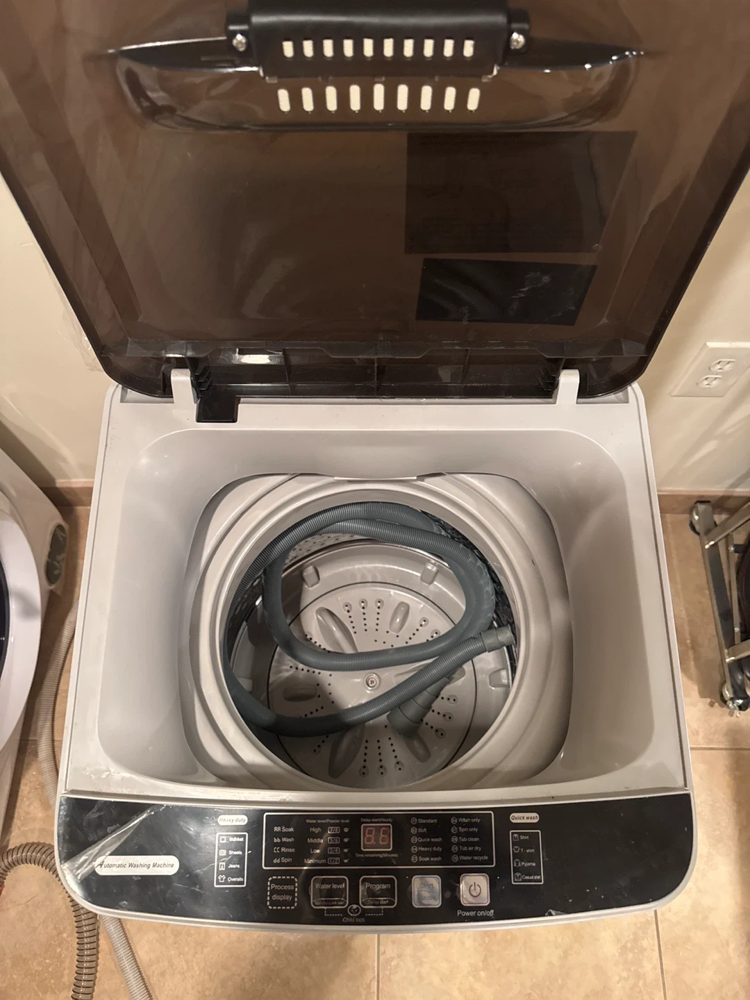Selling a portable automatic washing machine. It's in great condition and ready to use! Perfect for small spaces or apartments