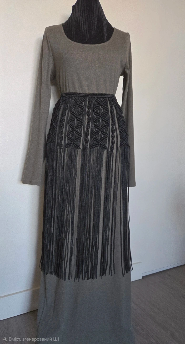 Selling a unique, handmade macrame skirt! The intricate knotting and fringe detail make it a real statement piece. Perfect for adding a bohemian touch to your wardrobe. It's in great condition and ready for a new owner