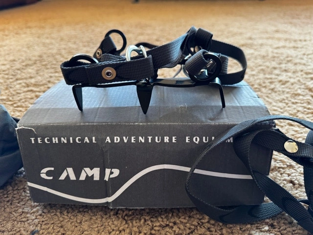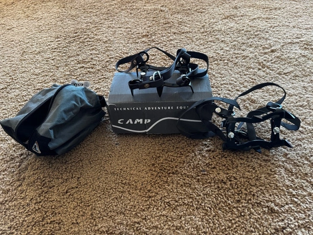 Brand new, never used. Two pairs of Camp Frost Ice Crampons available. One size fits any hiking or winter boot. Originally cost $143 each. Asking $100 for each pair, or $190 for both.