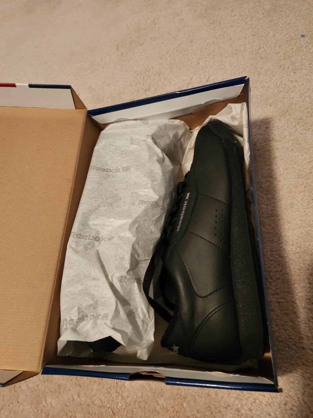 Classic black Reebok Princess sneakers for women. These shoes are a size 9 US, 6.5 UK, and 40 EUR. They're made in Thailand and come with the original box. They are in brand new condition.
