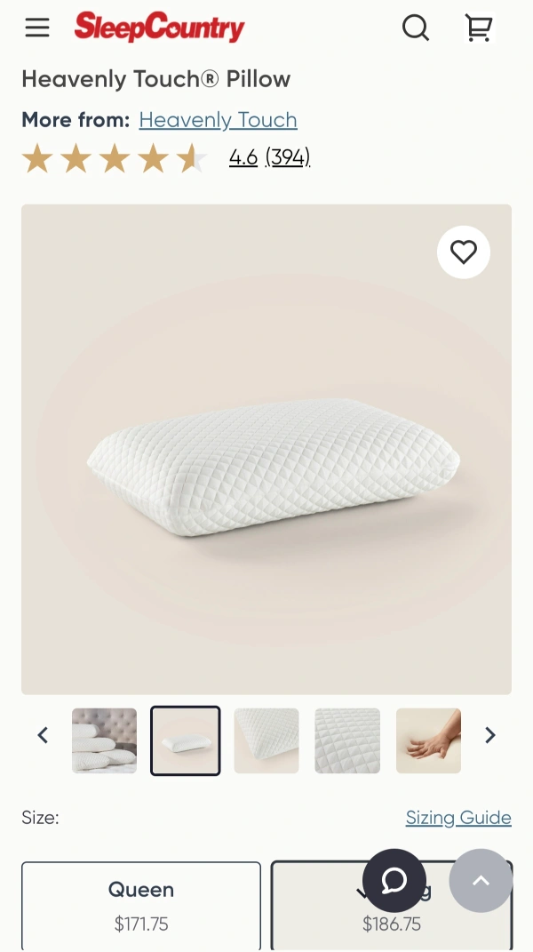 Oreiller King Heavenly Touch Memory Foam Pillow