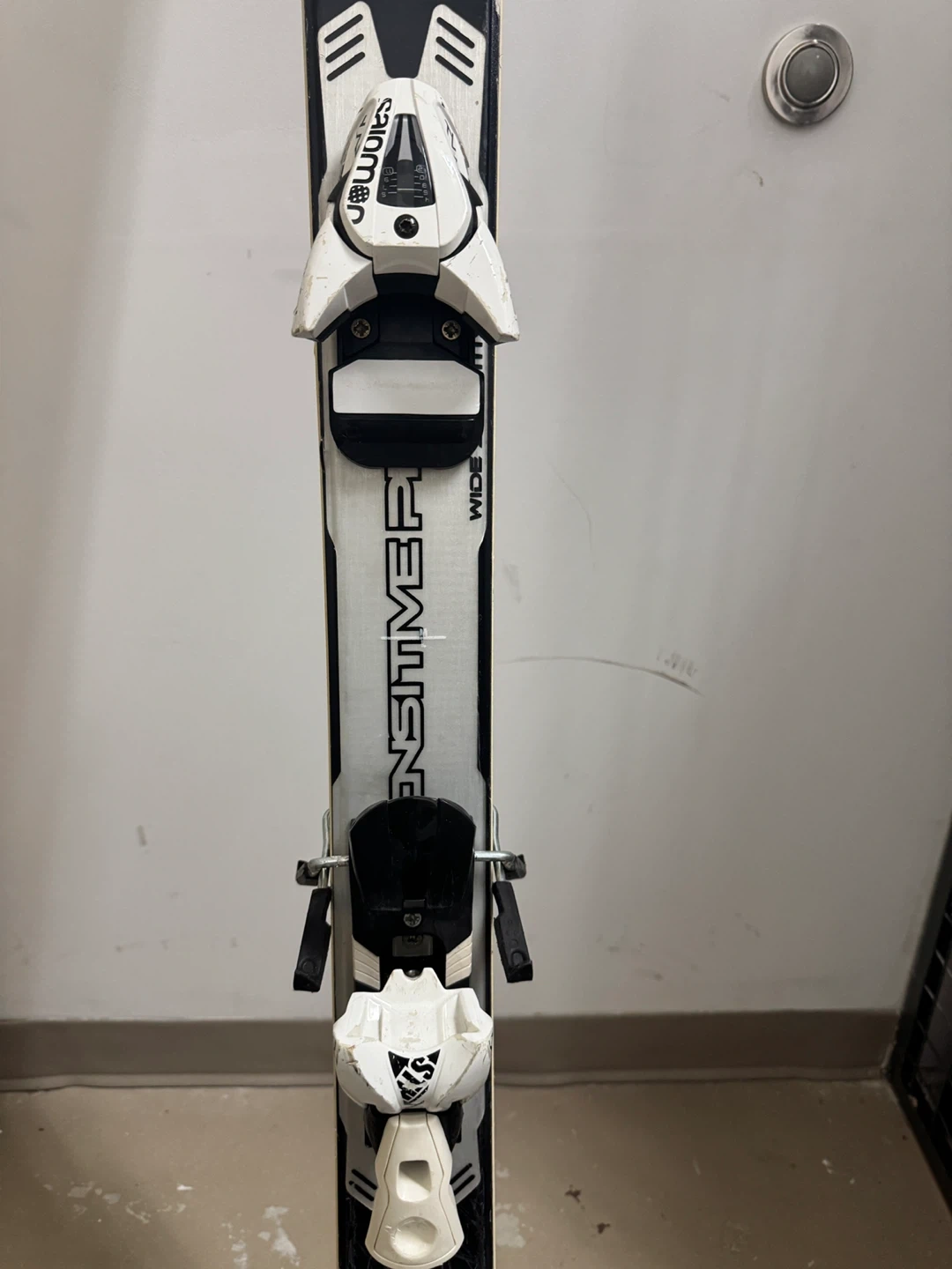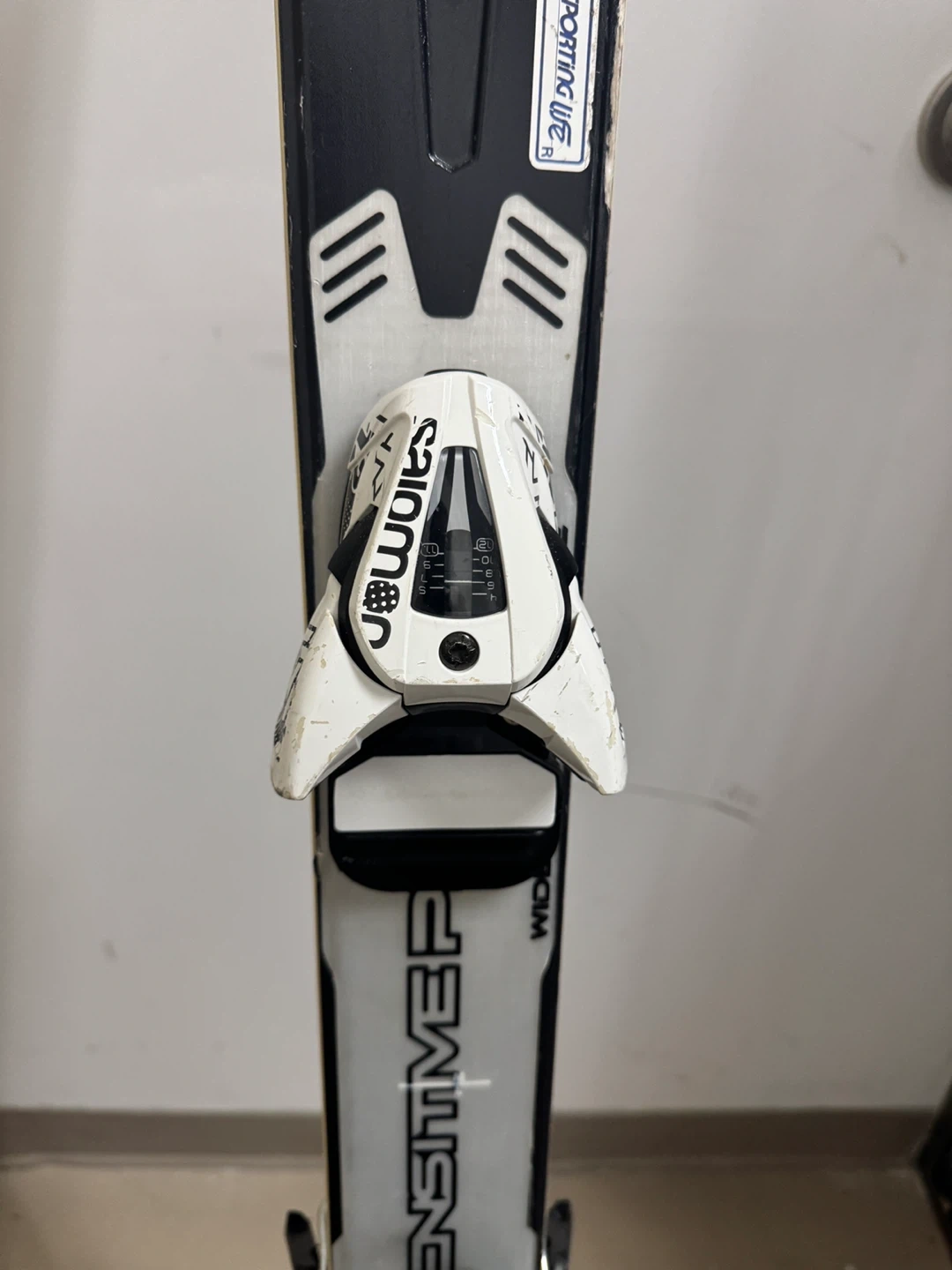 Salomon Enduro Wide skis are ready for the slopes. They feature Salomon bindings for a secure fit. These skis are designed for performance on varied terrain.