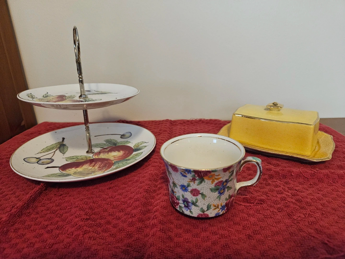 Old Cottage Chintz Teacup Butter Dish and G.C. Cake Plate