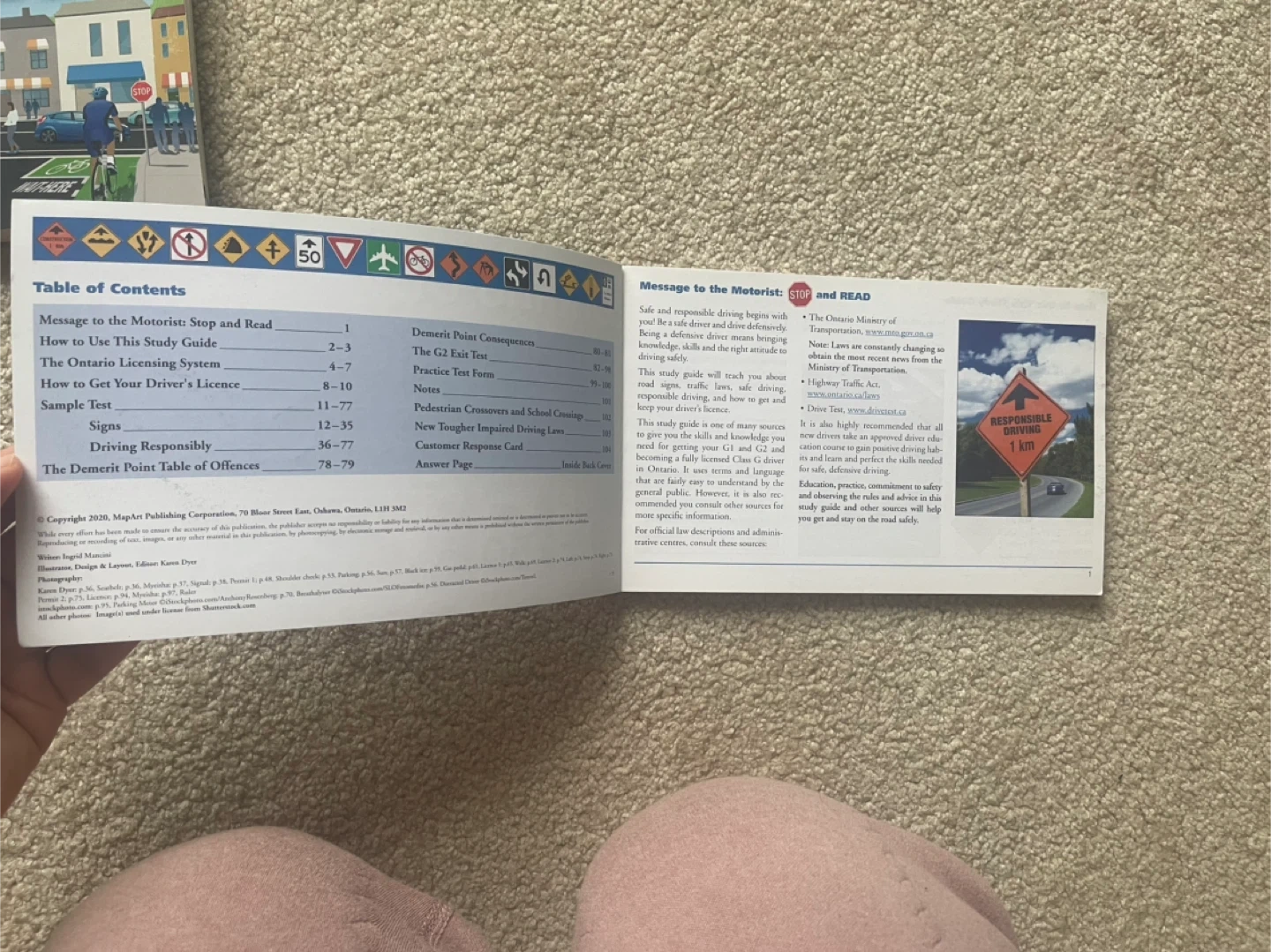 These books are your guides to passing the G1 and G2 driver's tests in Ontario. They cover traffic signs, rules of the road, and driving practices. The Study Guide includes over 200 sample test questions and answers. The Official Handbook is published by the Ontario government.