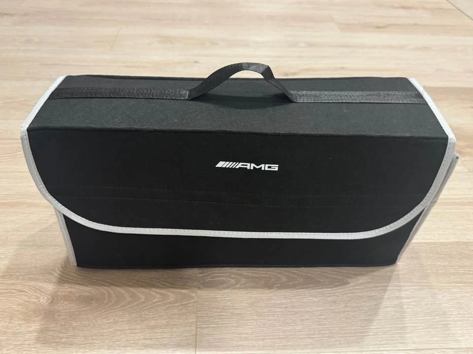 Brand new trunk storage tote, sealed in plastic. Clean black organizer with AMG branding, perfect for Mercedes owners or anyone wanting that premium OEM look in their trunk. Great for keeping your vehicle organized and clutter-free. Features: Mercedes-AMG style design, large storage capacity, durable structured build, Velcro on bottom and back to prevent sliding, folds flat when not in use, clean, premium black finish. Perfect for: Mercedes owners, car enthusiasts, detailing supplies, emergency kits, groceries or everyday items. Keeps everything secure and prevents items from sliding around while driving. Price: $40. Pickup: Seton.