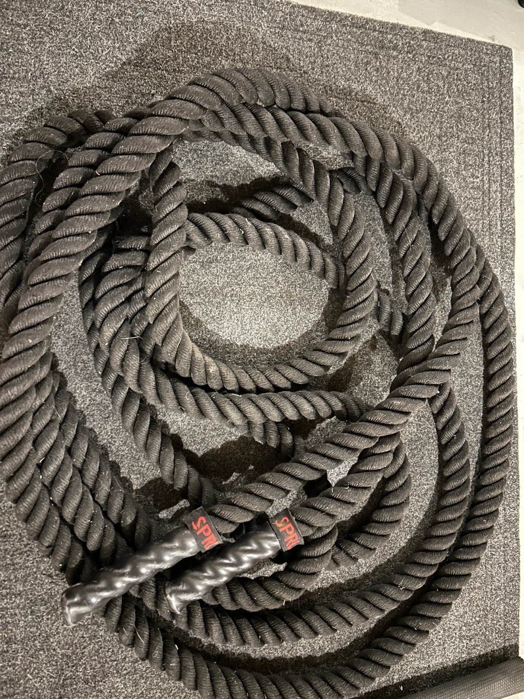 Selling a SPRI battle rope in great condition! It's perfect for adding some intensity to your workouts. The rope is black and looks barely used, ready for a new home gym! The length is approximately 38ft.