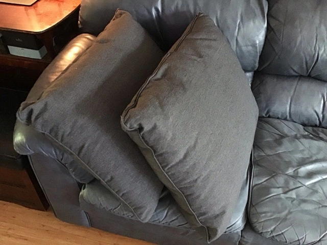 Redecorating. Nice pair of large grey decorative cushions in excellent condition. These cushions are super comfy and will add a touch of elegance to your living space. They are in great shape, smoke/pet-free environment and ready to find a new home. Pickup only in Burlington. If the ad is still up, then yes, they're still available… $20 FIRM for both. Thank you.