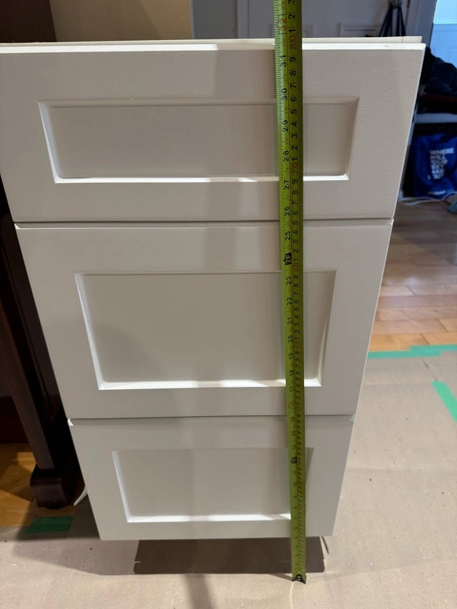 Drawers are soft-close. Drawer pulls and countertop not included.