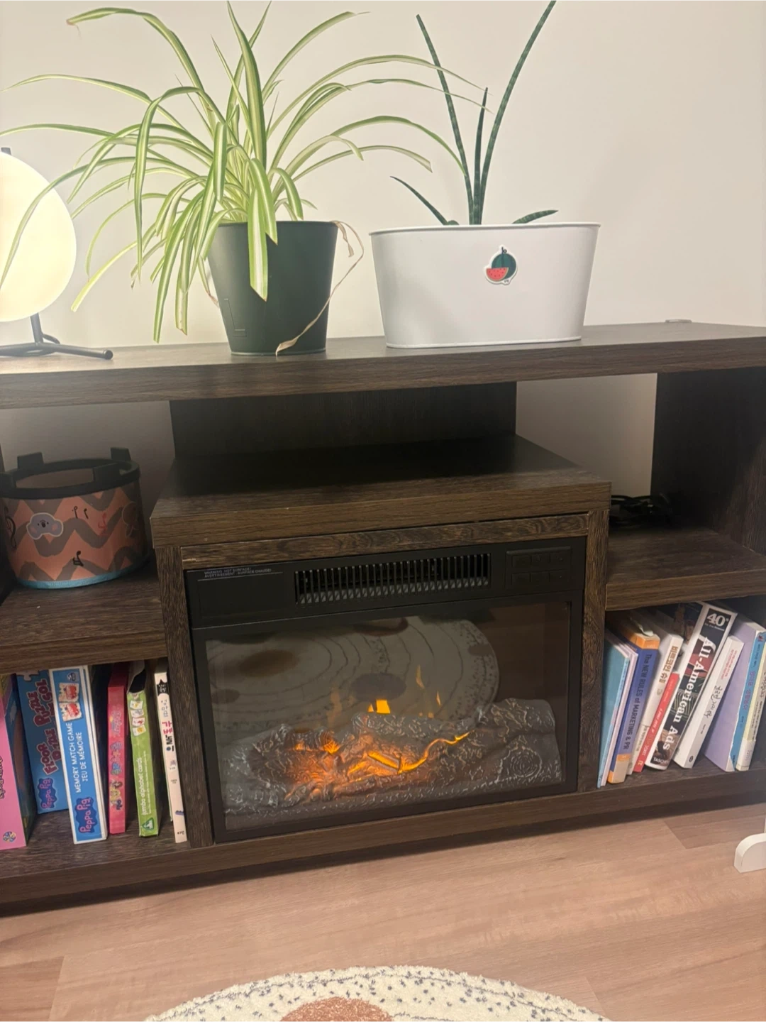 TV stand with fireplace. It comes with remote control that you can turn on the heater / fireplace. It is very cozy at night . Has some minor worn out and we are selling it because our new TV does not fit in it. Pick up only
