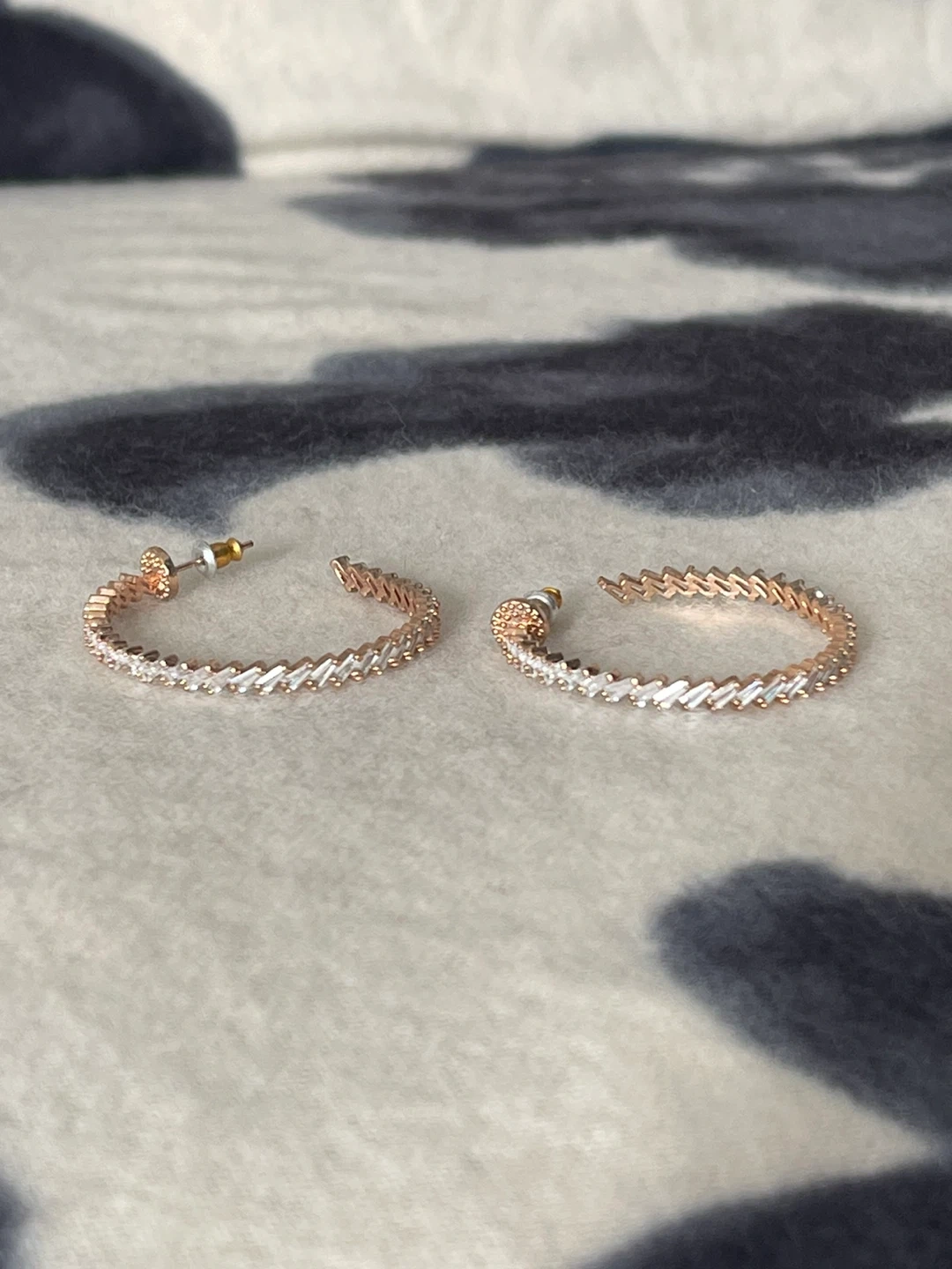 Rose Gold Hoop Earrings with baguette cut crystals/Rhinestones