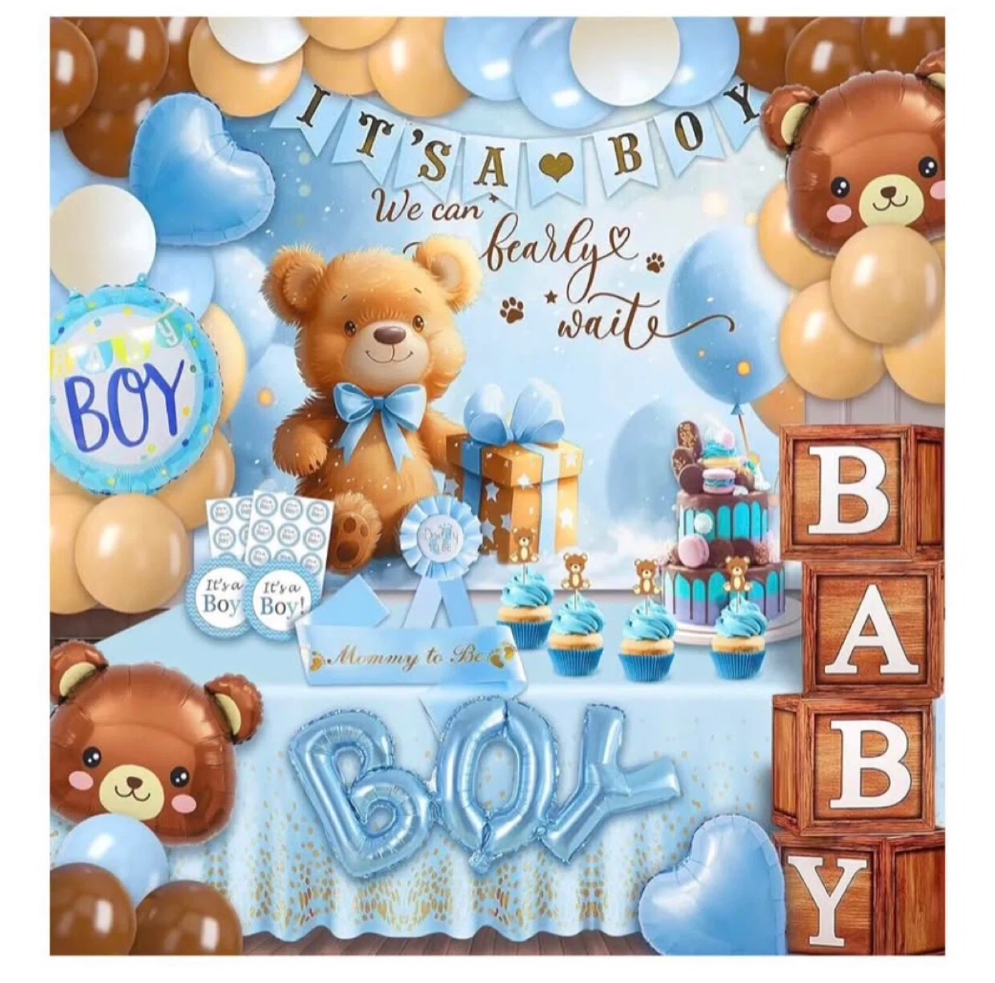 Boy Baby Shower Party Decoration Pack - Balloons, Banner, Blocks