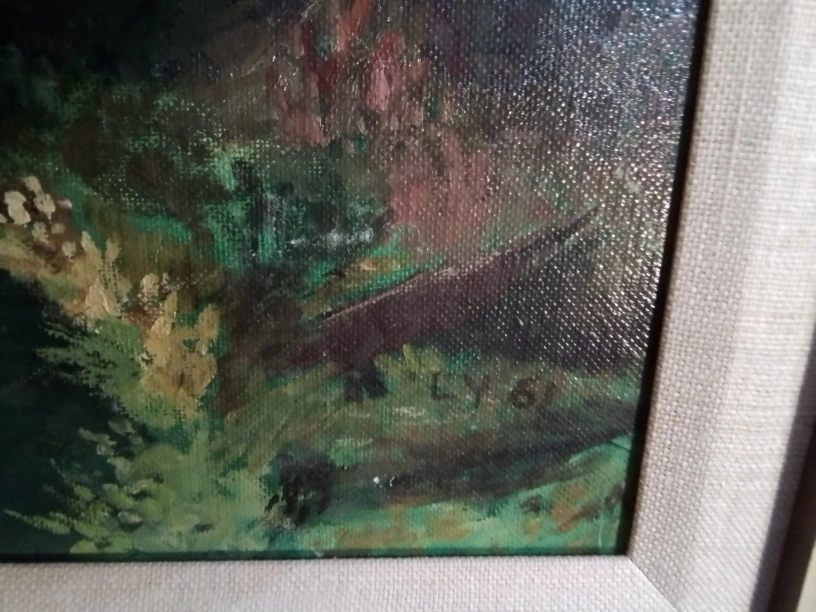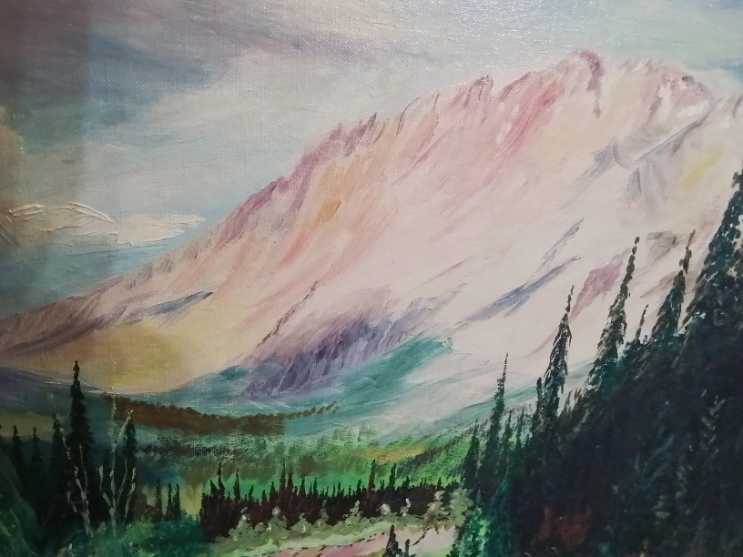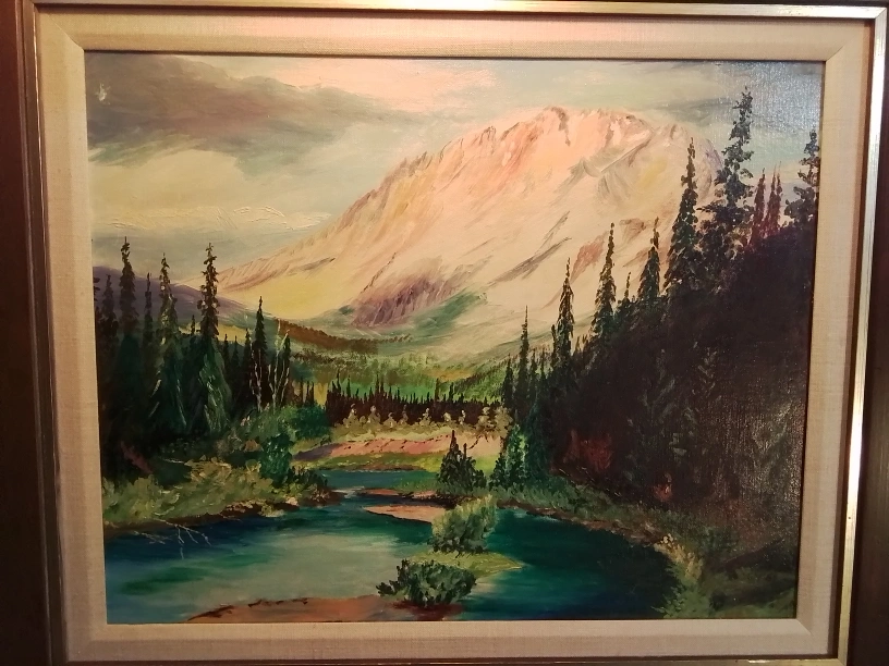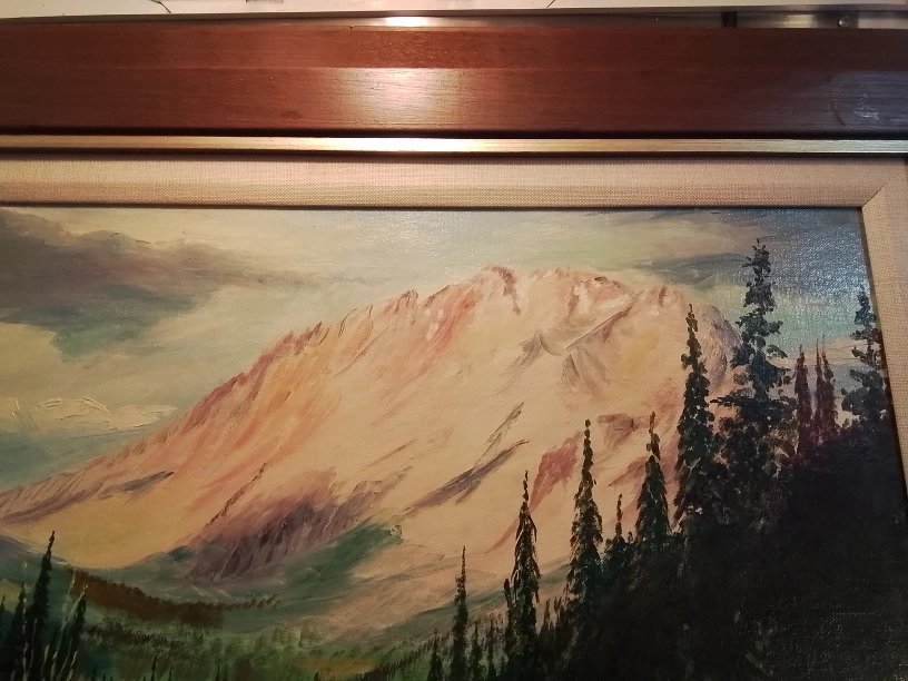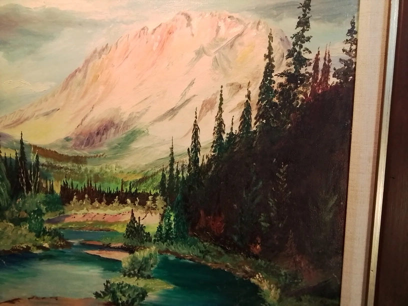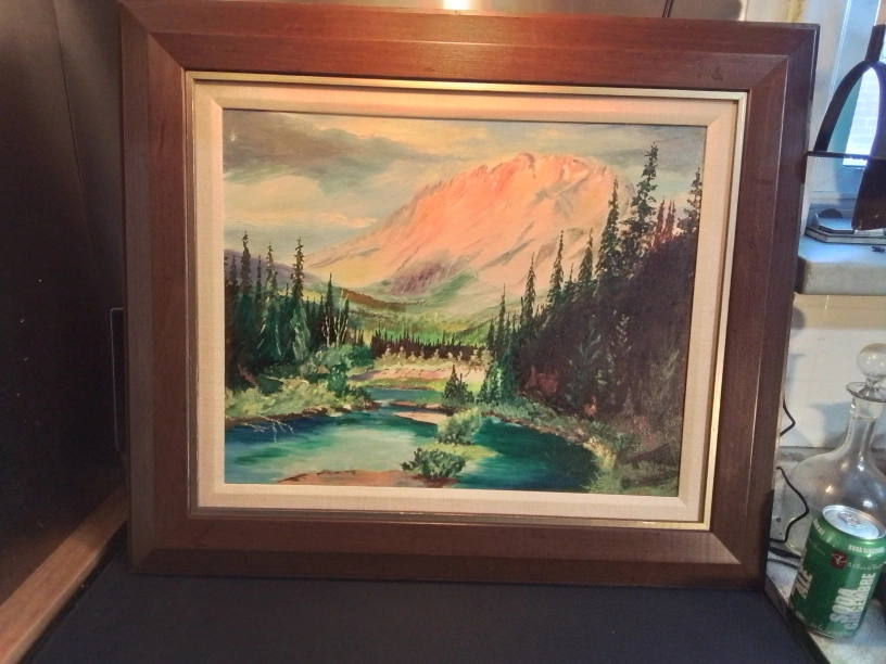 Framed Mountain Landscape Oil Painting Signed