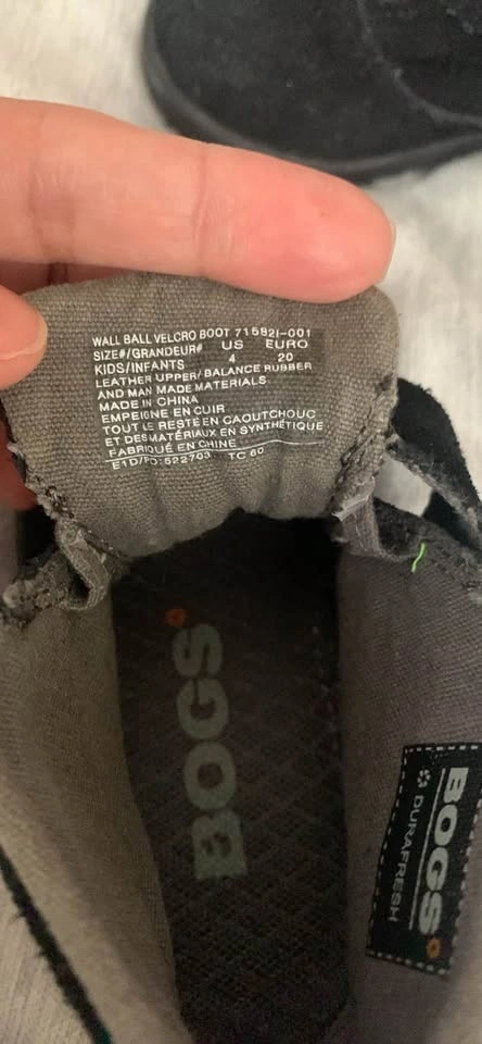 Gently used BOGS black boots. Suede material with velcro closures and rubber soles. Great for little ones. Smoke and pet free home. Pick up in Charleswood.
