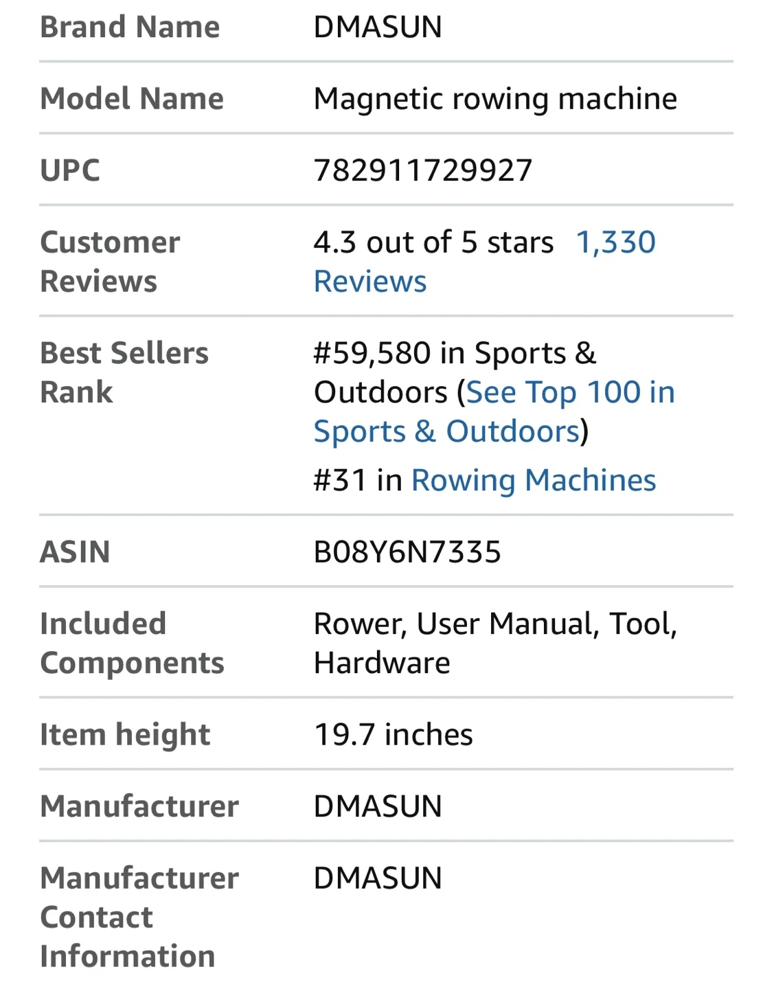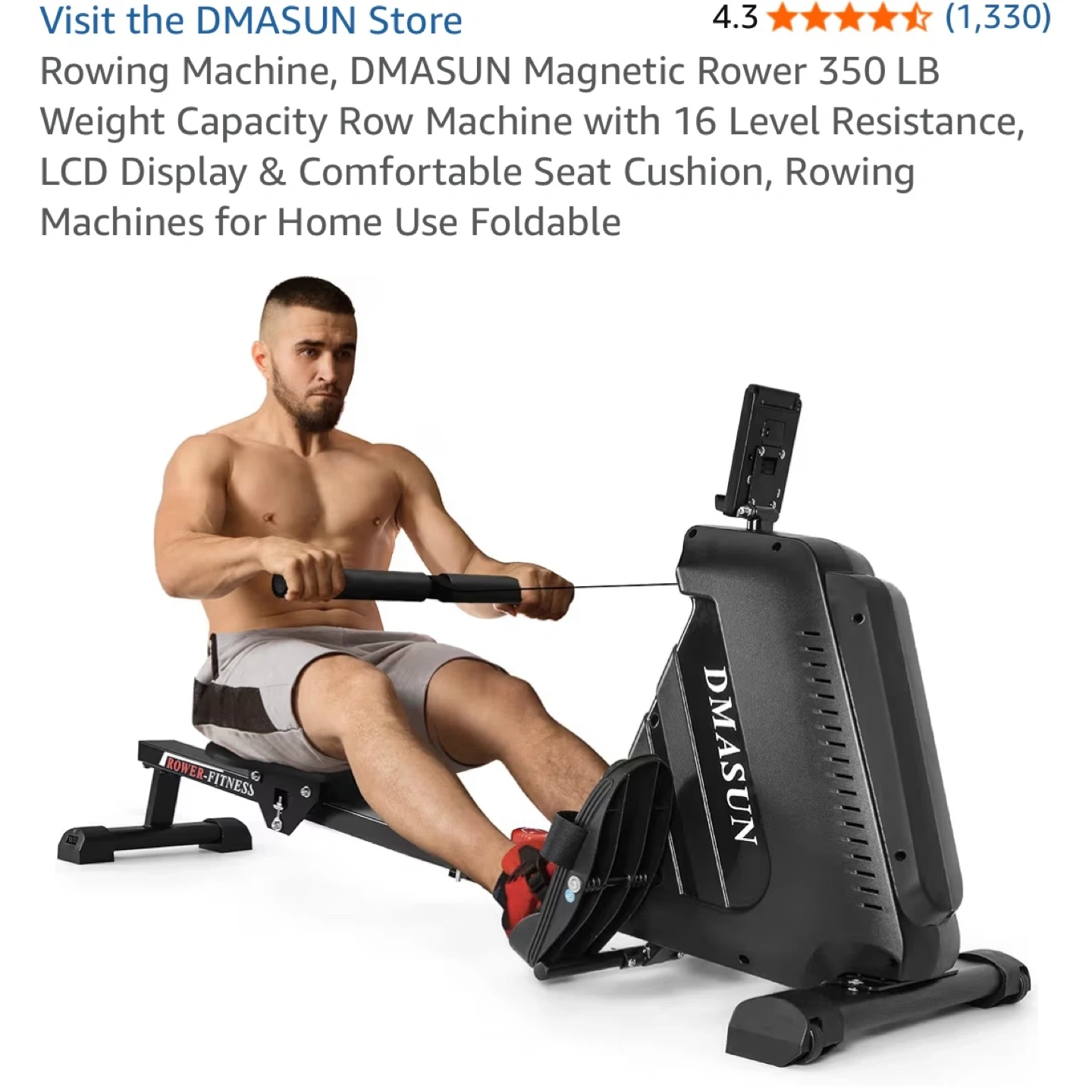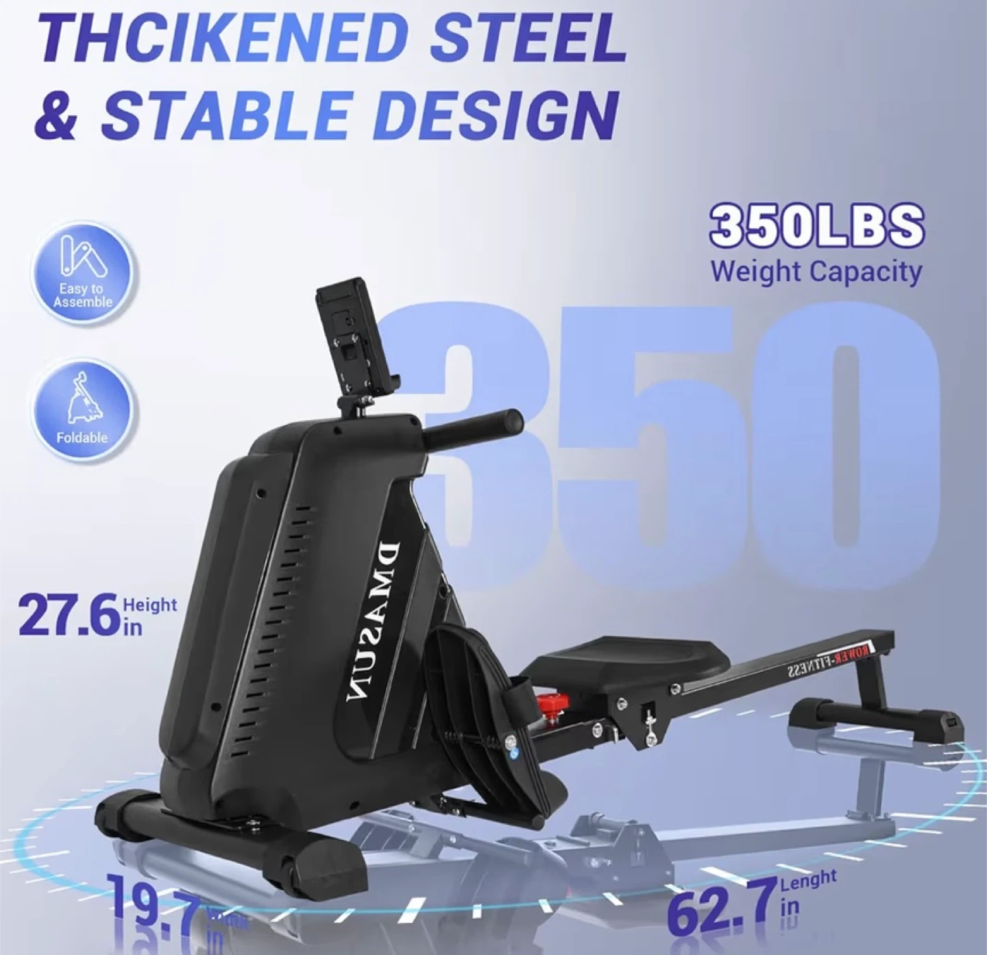Rowing Machine, DMASUN Magnetic Rower 350 LB Weight Capacity Row Machine with 16 Level Resistance, LCD Display & Comfortable Seat Cushion, Rowing Machines for Home Use Foldable.