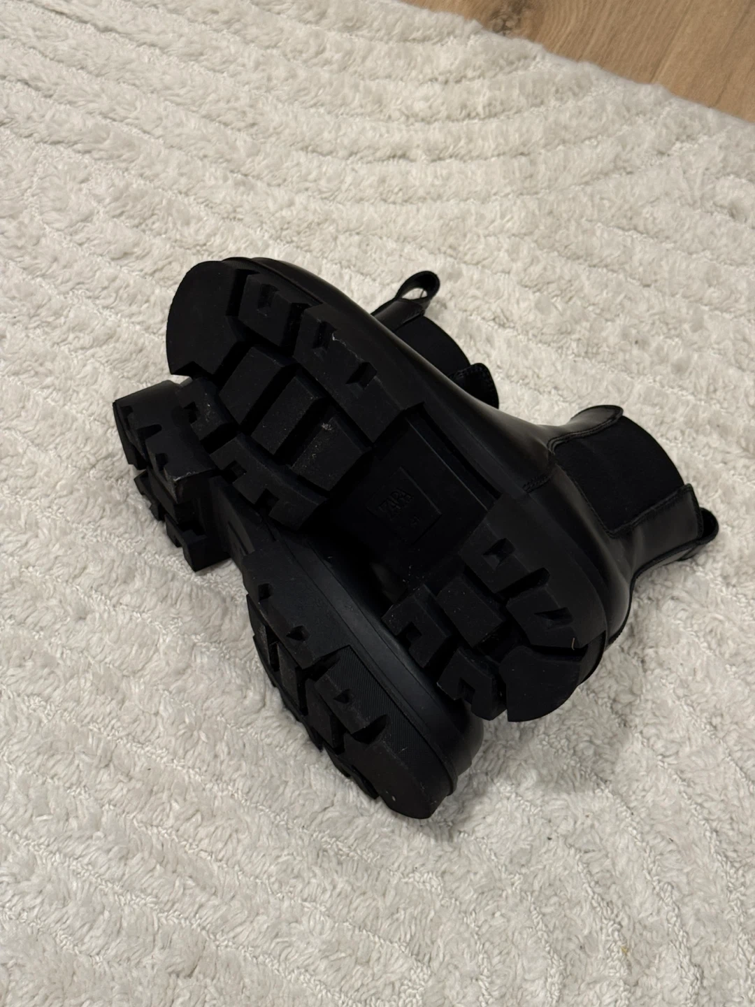 These black chunky Chelsea boots feature elastic side panels for easy on and off. They have a durable lug sole for extra grip. These boots are perfect for everyday wear!