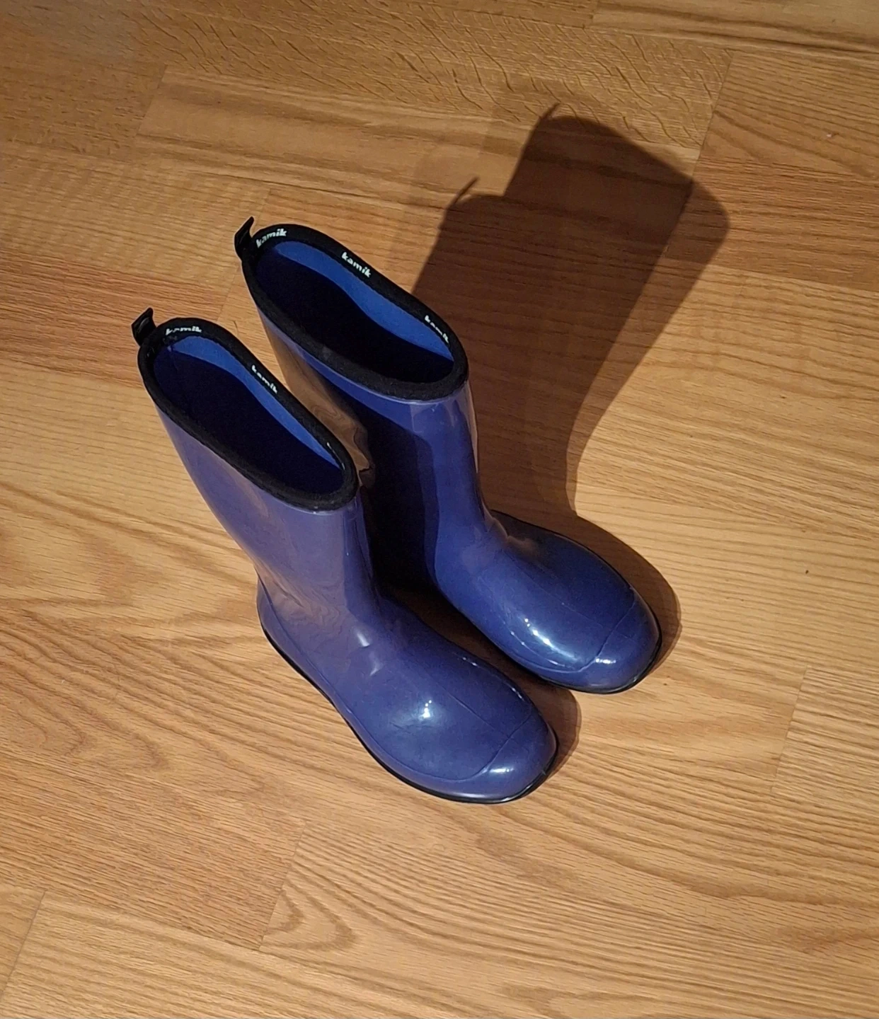 Lightly used Kamik Women's Heidi blue Rain Boots (12" high) which look great and are 100% waterproof. Made in Canada.