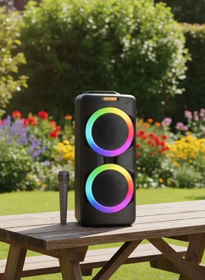 Portable Bluetooth Speaker w/ LED Lights & Mic