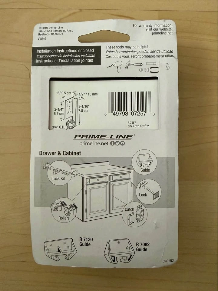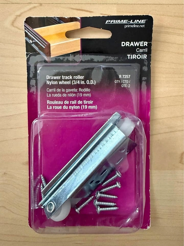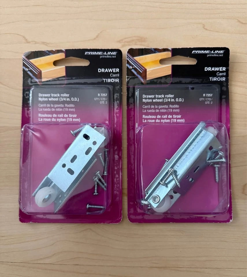 This set includes 2 complete steel rollers with nylon wheels (3/4β / 19mm O.D.) and screws. Strong metal brackets and smooth nylon wheels ensure quiet, easy gliding. Perfect replacement for worn-out drawer rollers on cabinets, dressers, vanities & more. Easy DIY install with instructions included. Brand new in original packaging.