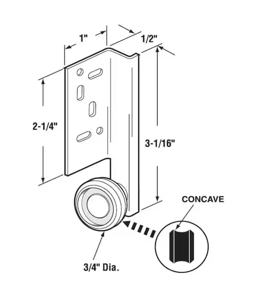 2x Prime-Line Drawer Track Rollers - Concave Edge