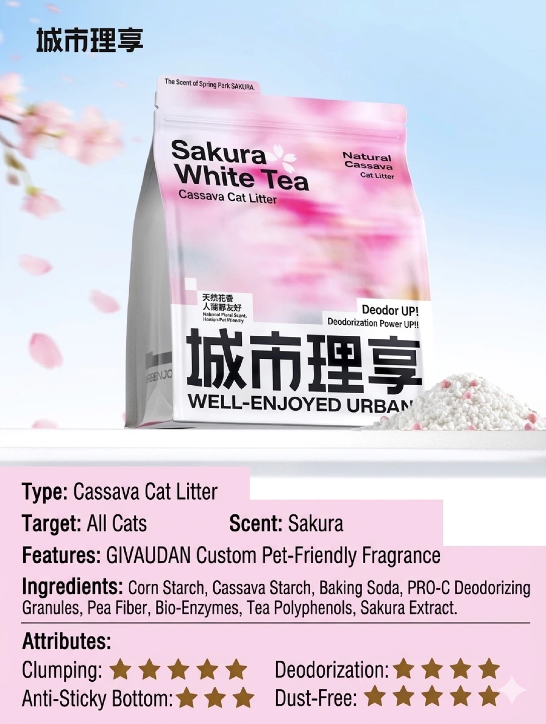 URBANJOY Sakura & White Tea Scented Cassava Cat Litters