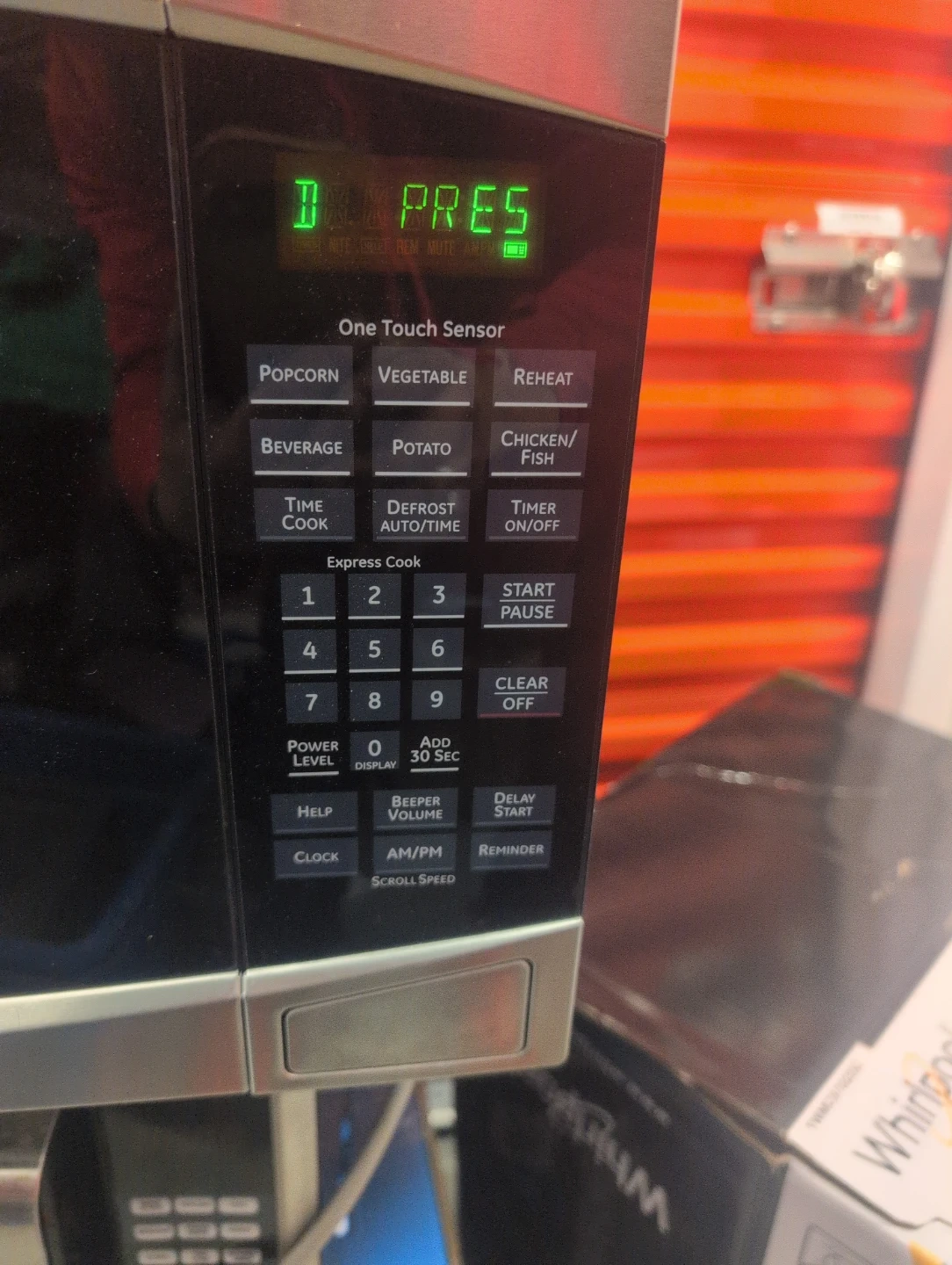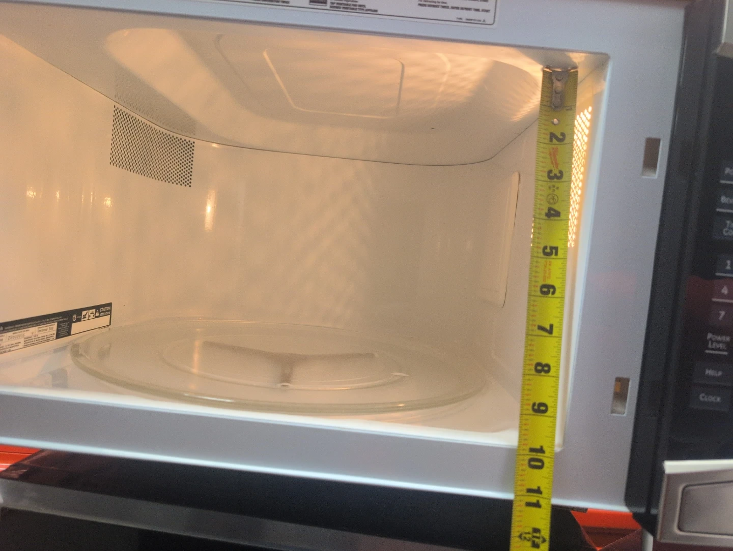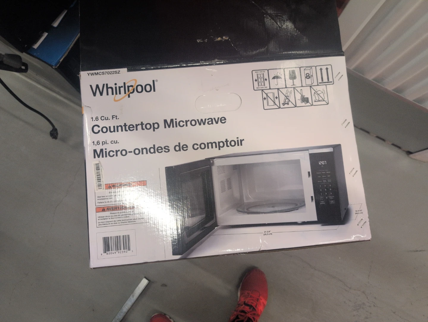 Whirlpool countertop microwave with 1.6 cu. ft. capacity. Includes one-touch sensor cooking and express cook options. Interior measures approximately 15 inches wide by 9 inches high.