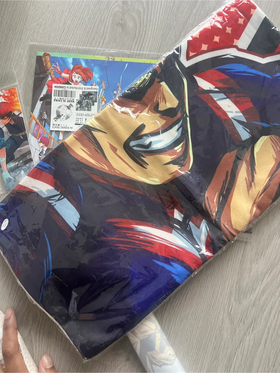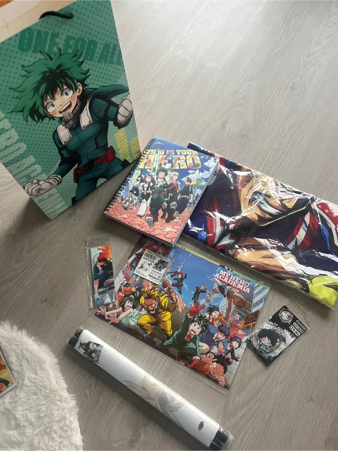Toronto Comic Con My Hero Academia mystery bag set. It contains a keychain, notebook, poster, All Might pillow case, stickers and more. Perfect for any MHA fan.