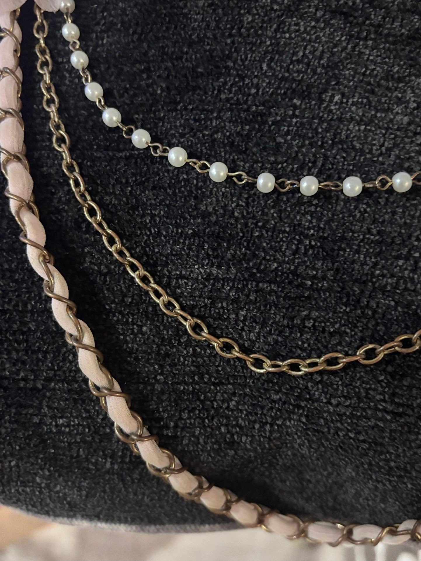 Design: Layered gold-tone chains with faux pearls