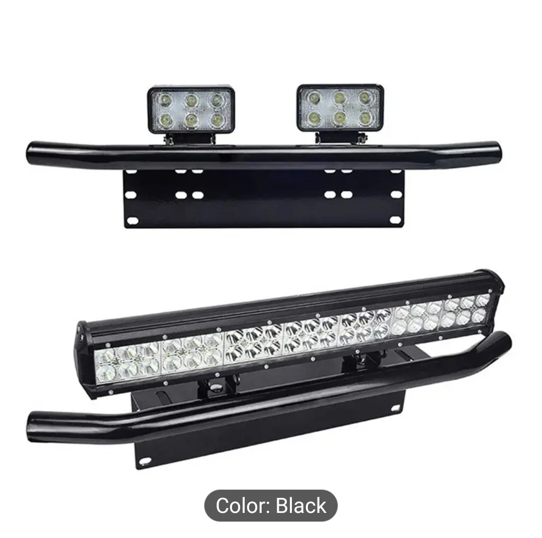 (out of stock)This is an aluminum light bar mount in black. It has dimensions of 60cm / 23.6inch in length and 11cm / 4.3inch in height. It's designed to hold light bars and auxiliary lights.