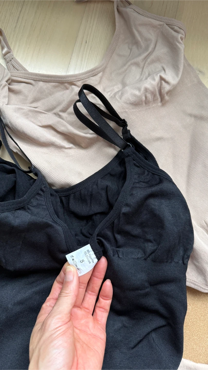 - 2x thong compression bodysuits size S with 54% Nylon and 46% Elastane blend.