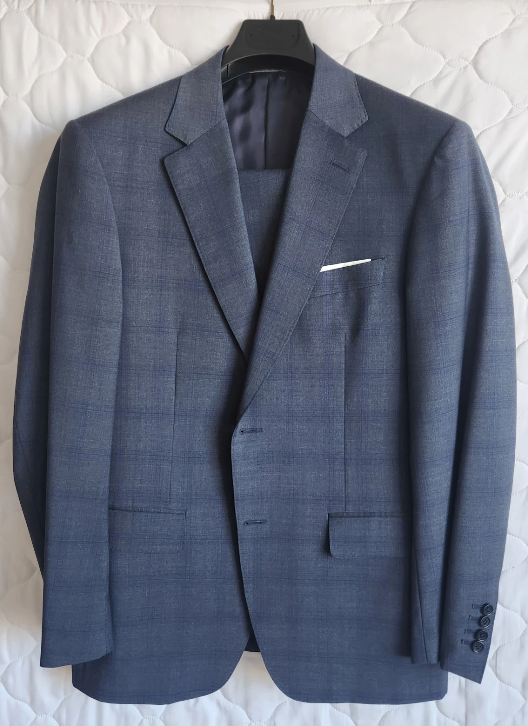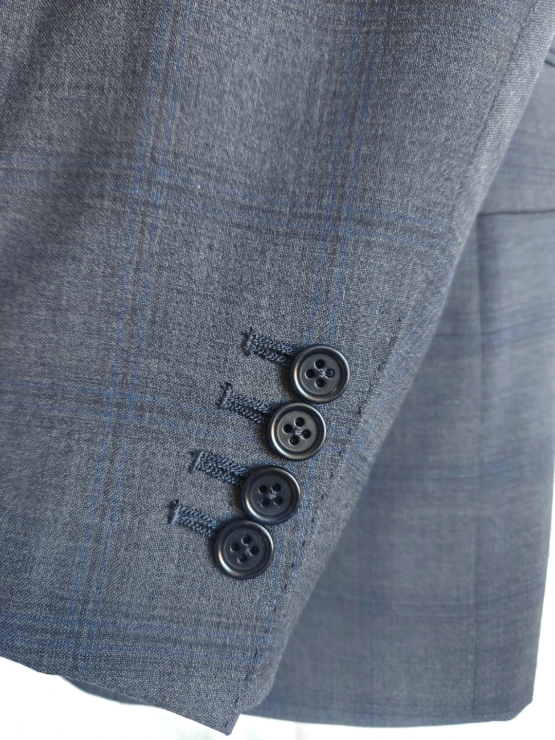 A sharp Canali suit made in Italy. The fabric is a wool with cupro lining. It features a classic 2 button, 2 vents, plaid pattern and four buttons on each cuff.