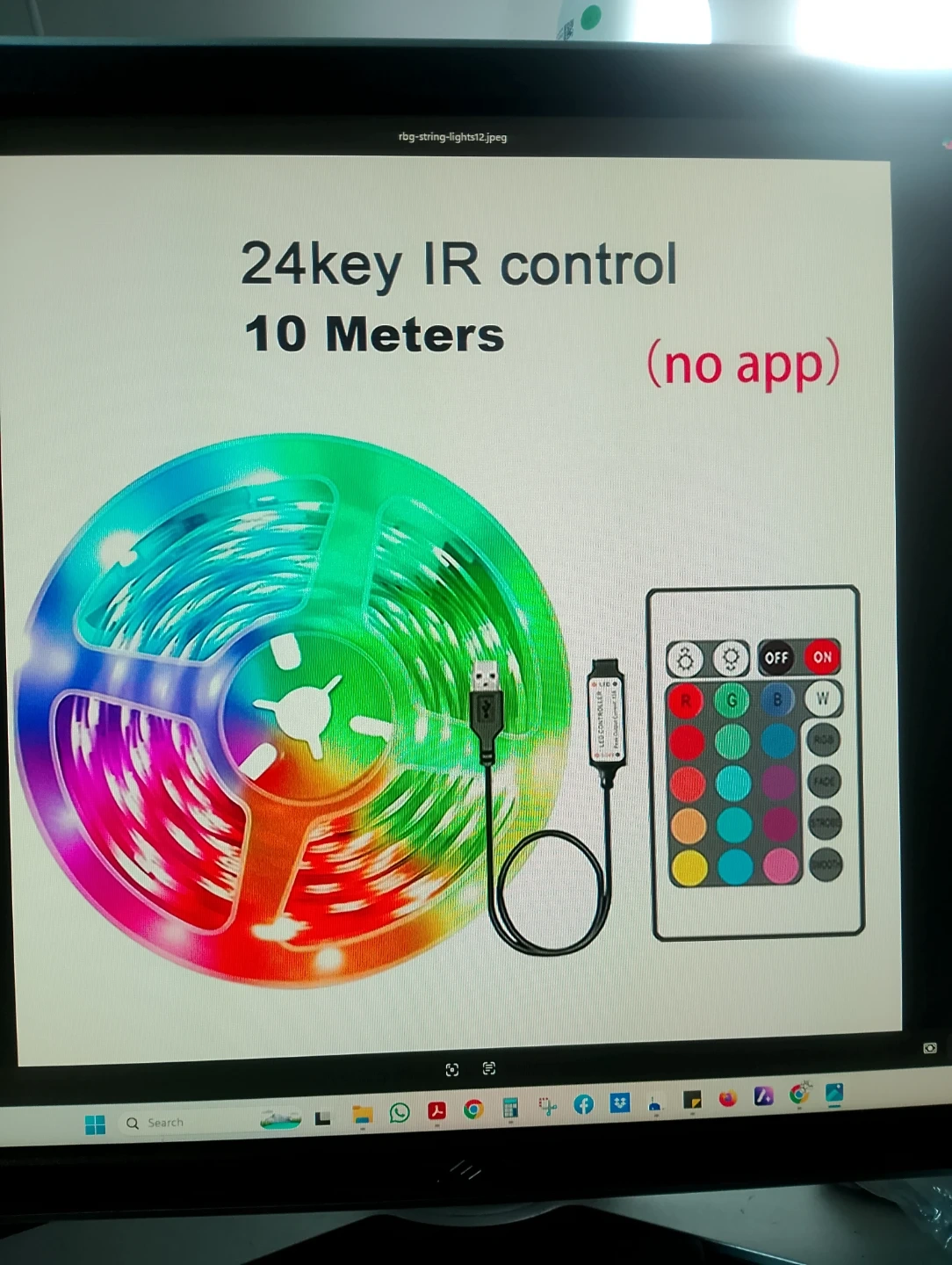 Add some colour to your space with this 10-meter RGB string light set! It comes with a 24-key IR remote for easy control, and it's app-free. Simple setup for mood lighting or fun decorations!