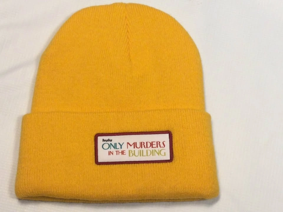 Cozy yellow beanie from Hulu's Only Murders in the Building. Has the show logo patch on front. Great for fans of the show. Public meetup in Manhattan / Hell's Kitchen.