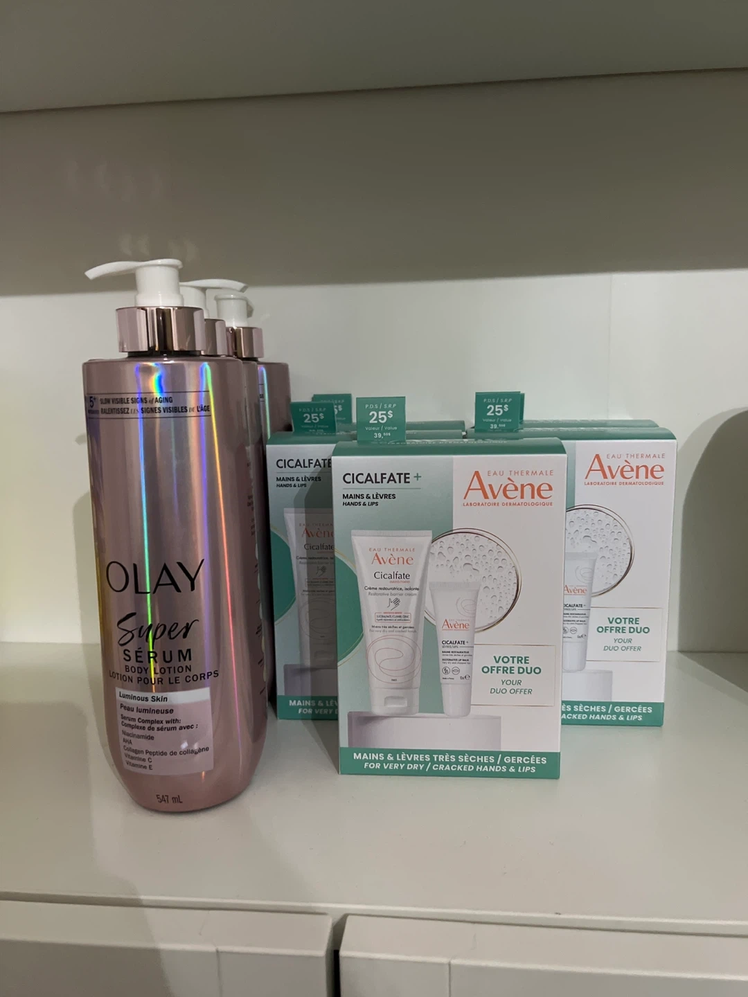 118I have a few skincare items up for grabs! There's an Olay Super Serum Body Lotion for luminous skin, 547 mL. Also, I have some Avène Cicalfate Mains & Lèvres Duo Offers for very dry/cracked hands & lips $25 each or two of your choice for $40