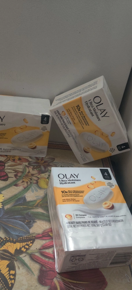 Selling 3 packs of Olay Ultra Moisture Hydratant beauty bars. This pack contains 4 bars and is perfect for healthy, good-looking skin! They have 10x more moisturizers and shea butter for a pampering lather. Each bar is 90g (3.17 oz), with a total net weight of 360g (12.69 oz)