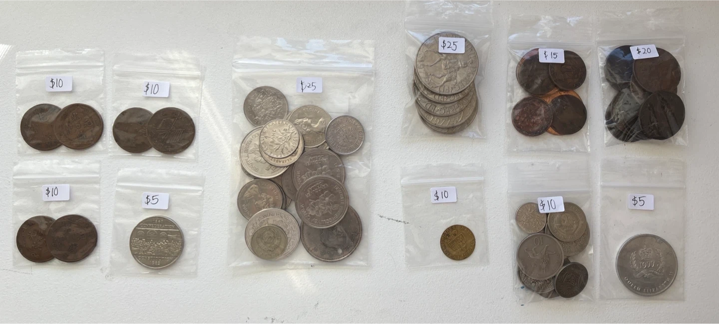 I have various coins in bags for sale. Each bag is priced as marked in the photos. Take a look and let me know if you're interested! Pick up only