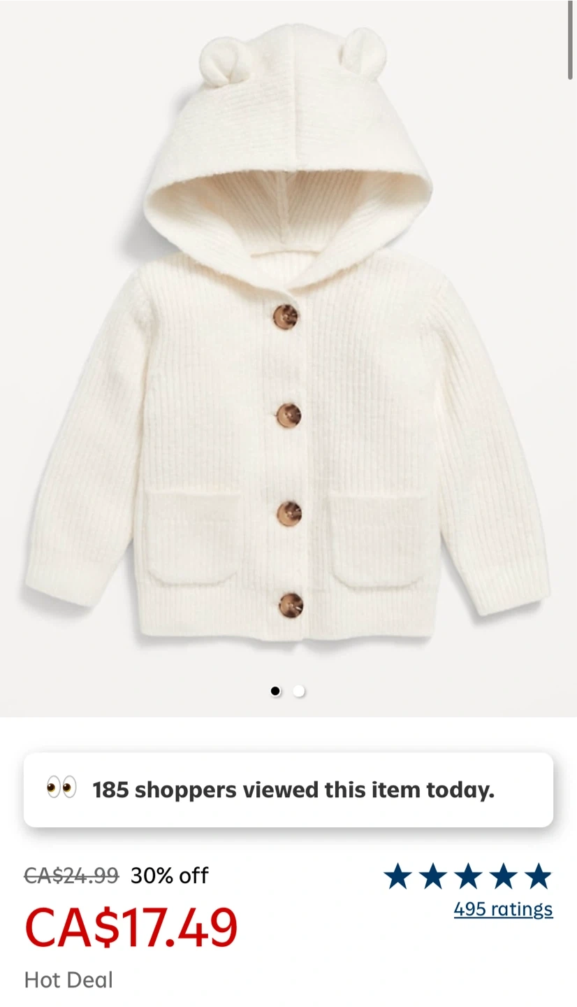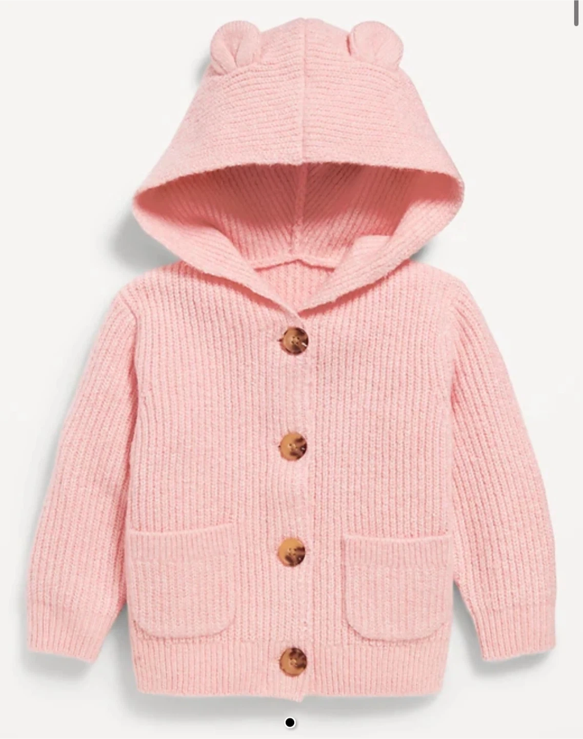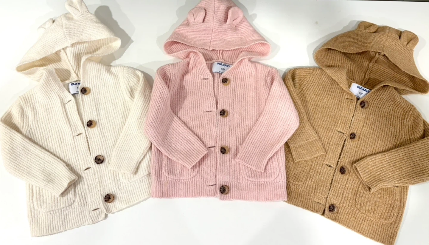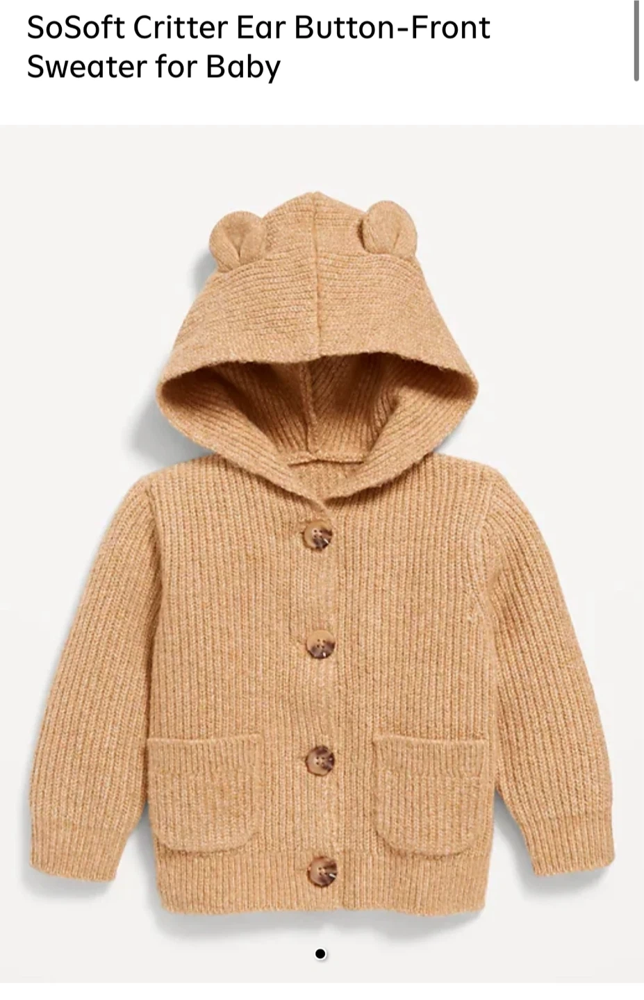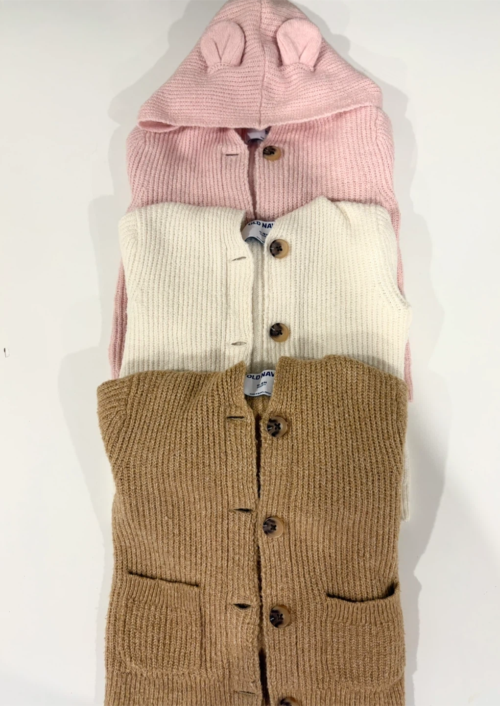 65Keep your little one cozy with this adorable Old Navy baby sweater! It features a cute bear hood and button-front design. Available in cream, pink, and brown Size 12-18 but fit a bit smaller All 3 for $15 firm!