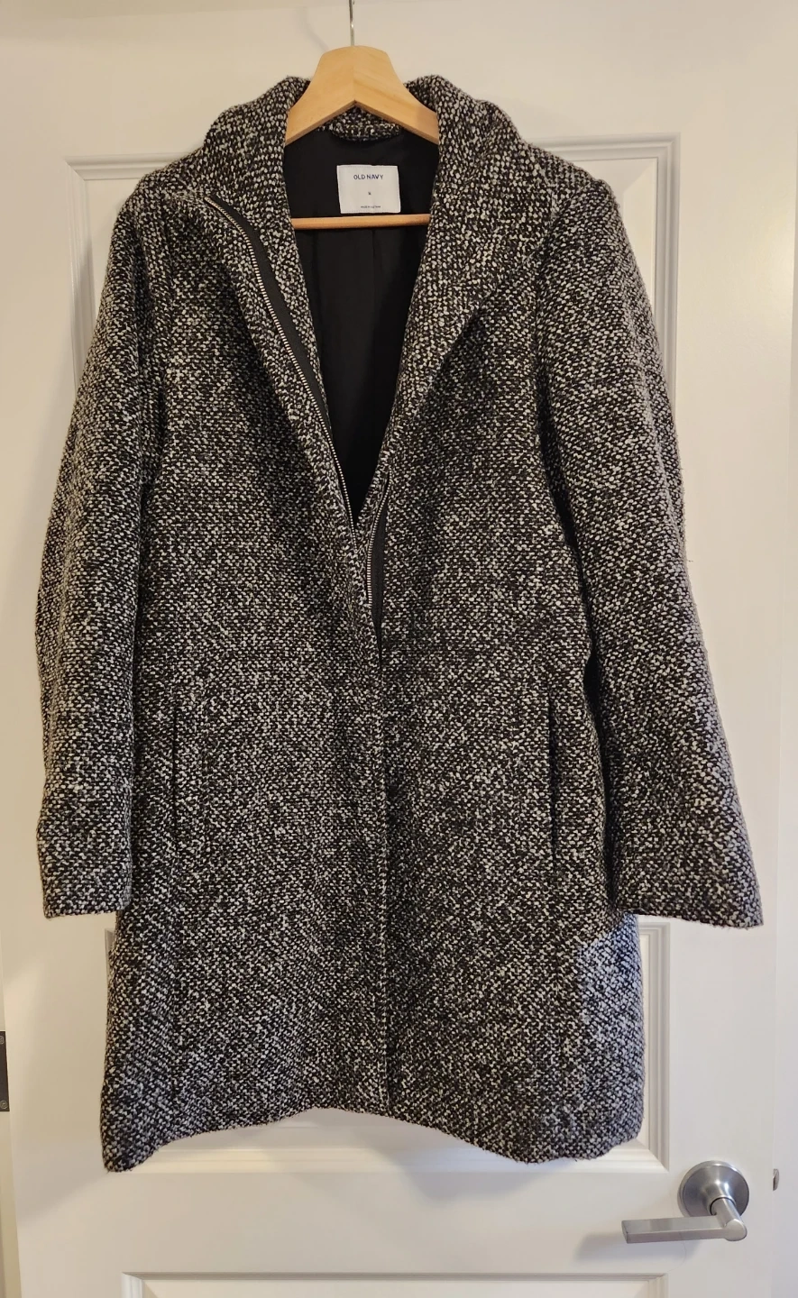 15Selling a stylish Old Navy tweed coat in black and white! Size medium and in great condition. Perfect for adding a touch of sophistication to your wardrobe. Pickup in Silverton SW Message me if interested ☺️