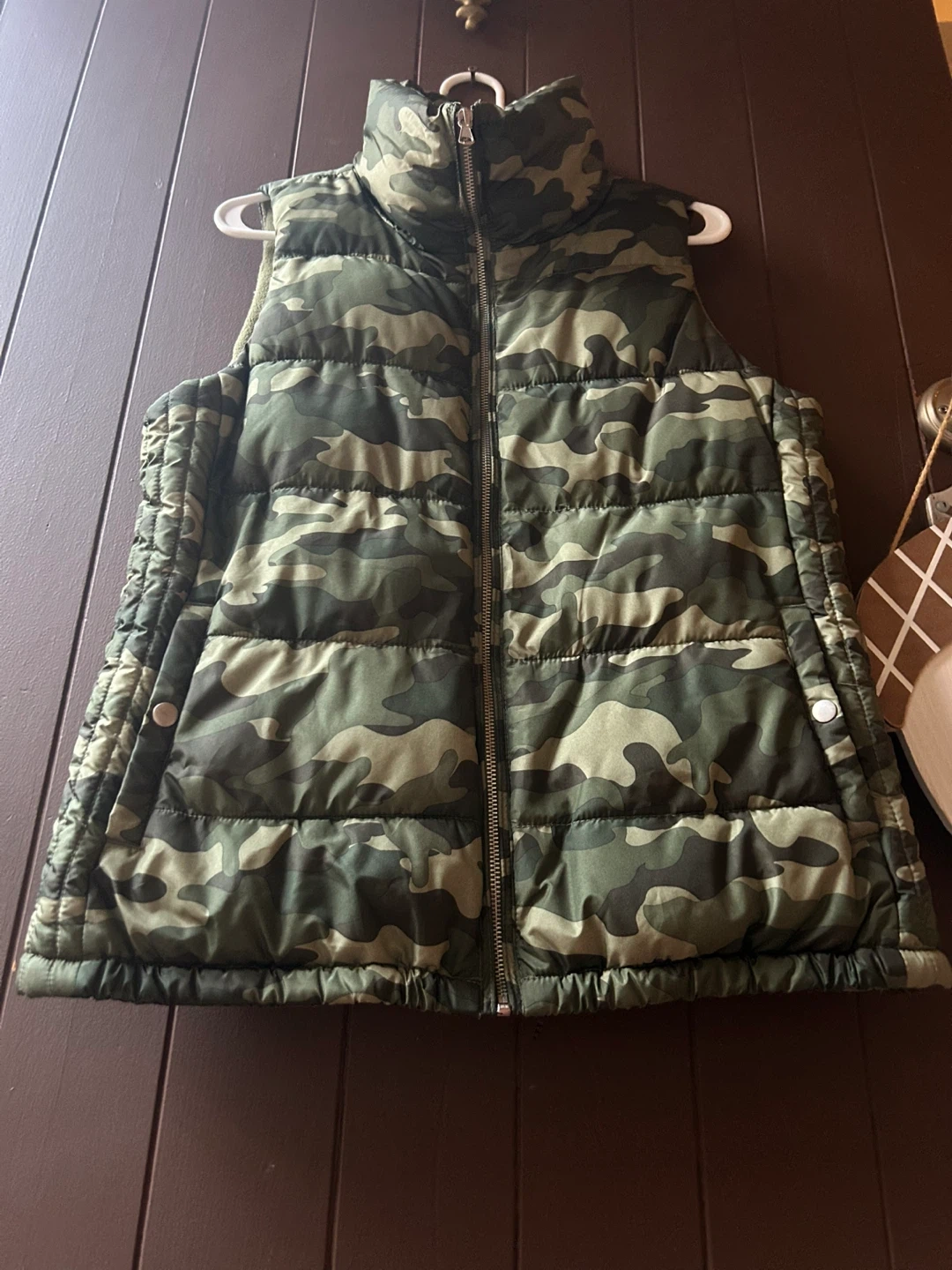 15Women’s zip up Old Navy Army & khaki puffer vest 💲17 | inner thick soft lining for extra warmth | 2 deep pockets with snap button seal | almost new | washed & stored protectively | It's a size medium and would be a great addition to your wardrobe for those in-between weather days | Made with 100% polyester 🙂✨ I OFFER: • curb side pick up • can meet in a public location (North End St. Catharines located - Fairview Mall area) • Can deliver in City for a fee • I also ship - please msg me your postal code if you are outside of St. Catharines and do not drive. If you are not too far, I can deliver for a fee, if you are a bit away, I can quote you on shipping or I may ship for free depending on 1. City 2. Region 3. Province