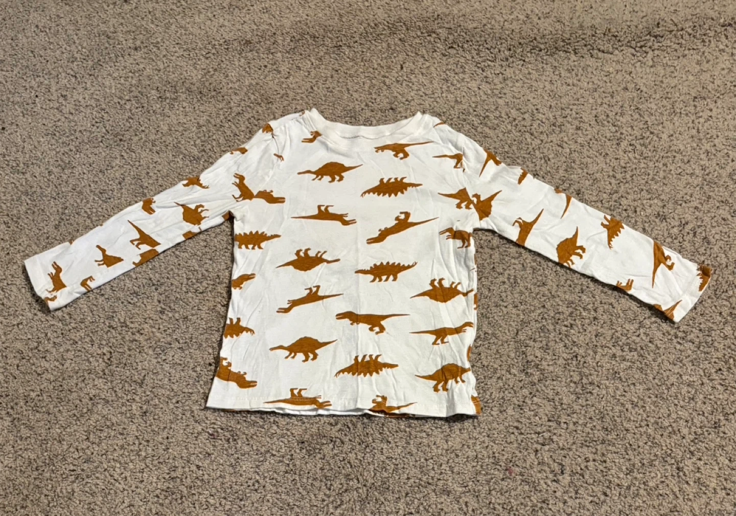 15Old Navy long-sleeve shirt, size 5T and features a fun dinosaur pattern. in good used condition