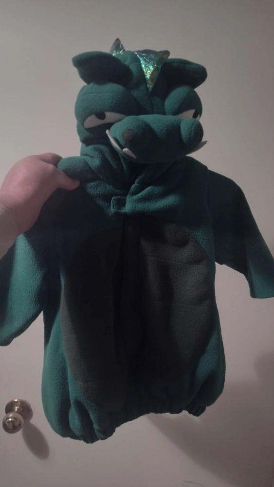 Super cute Old Navy dragon costume for little ones! Size is 12-24 months. It's in great condition and ready for dress-up or Halloween!