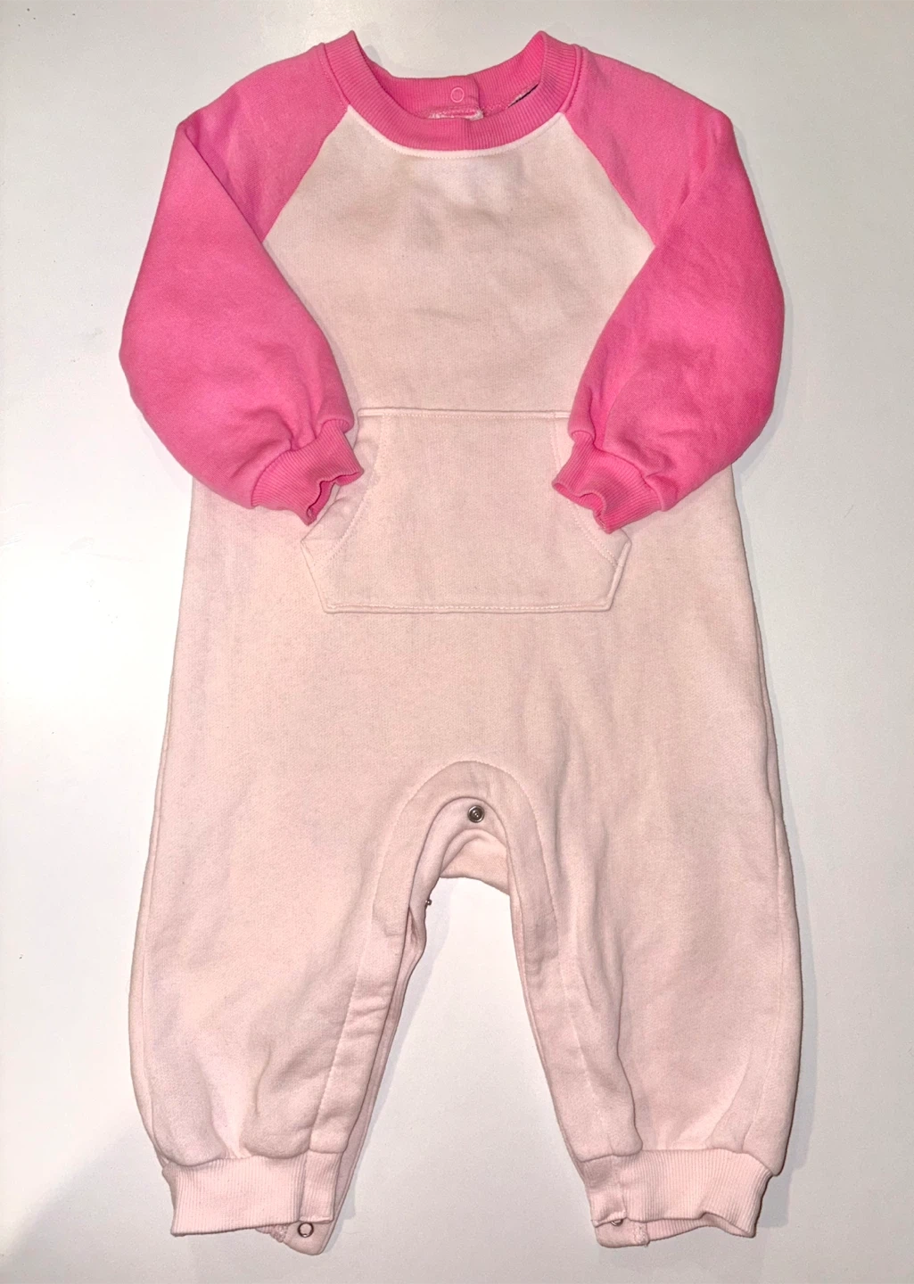 65Selling a super cute and cozy Old Navy long-sleeve fleece one-piece for baby! It's in a lovely pink colourblock design and perfect for keeping your little one warm. Size is 12-18 months Worn maybe twice and hung to dry Fits a bit smaller